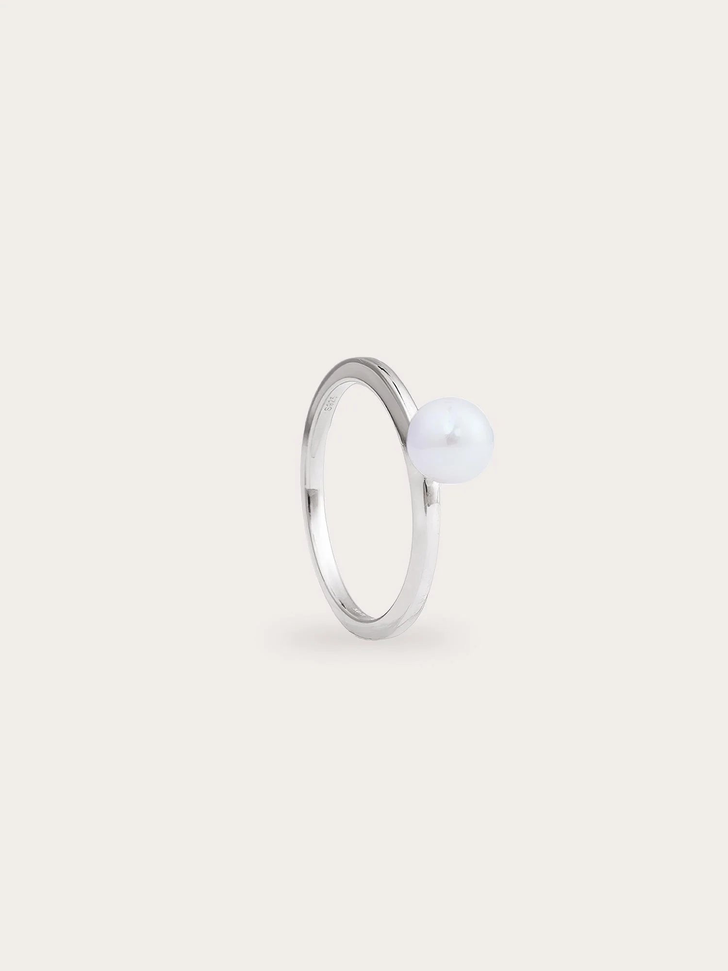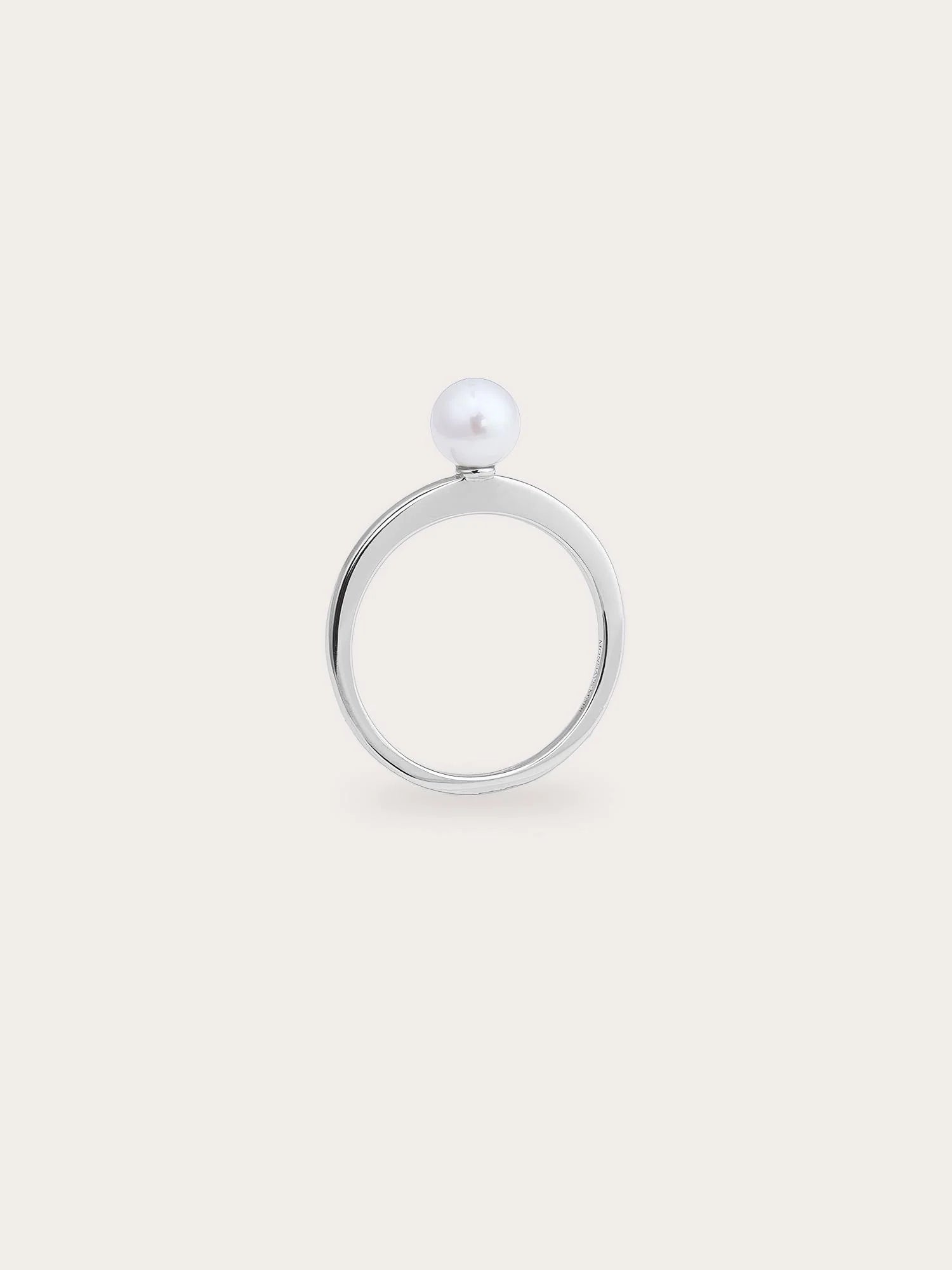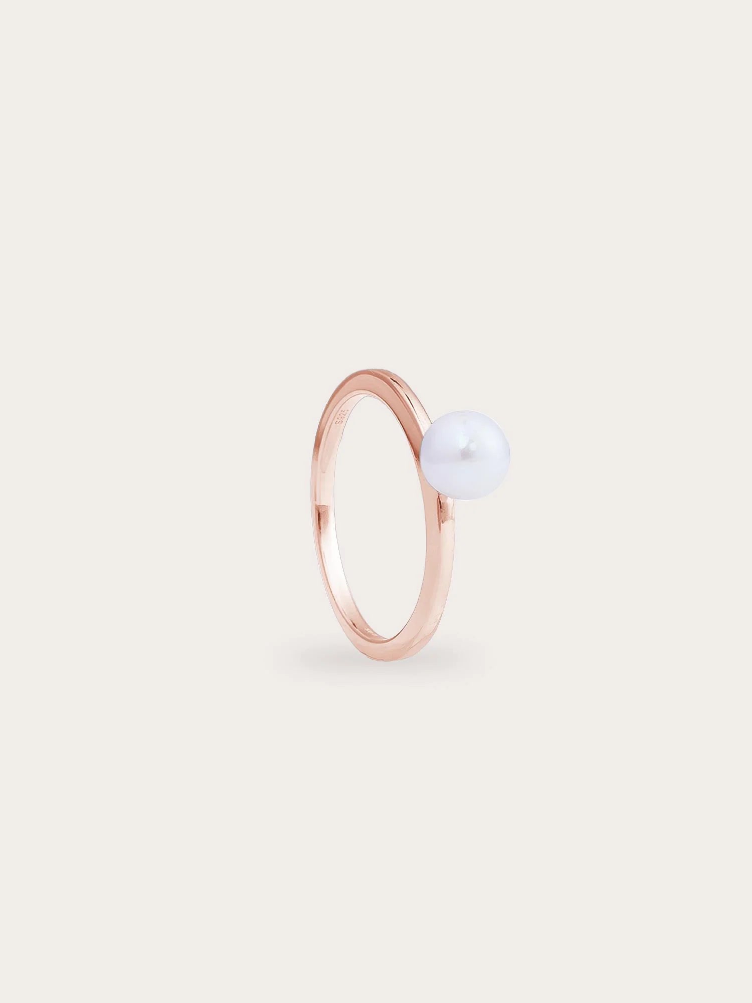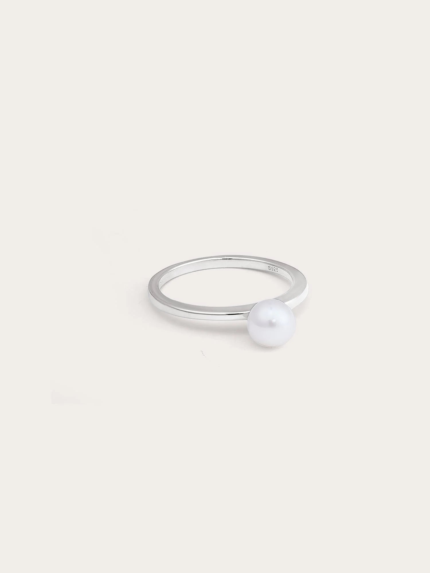 This classic ring features a single pearl on a thin band. The pearls are saltwater cultured, known for their excellent luster and perfect roundness. It's handcrafted with a gold-plated layer on silver.