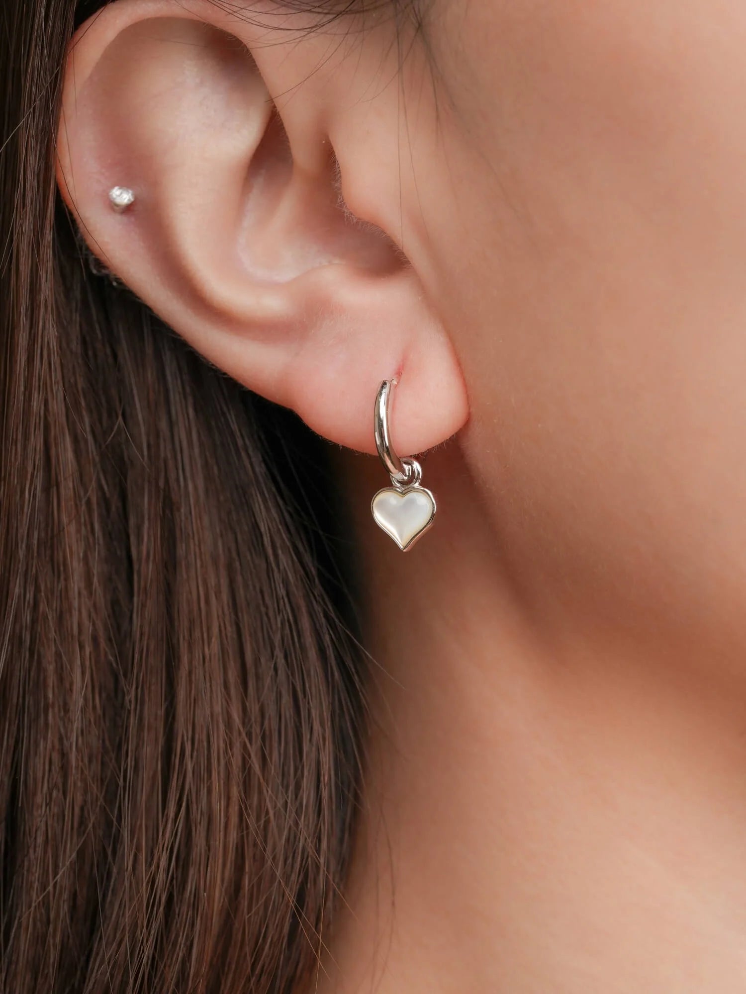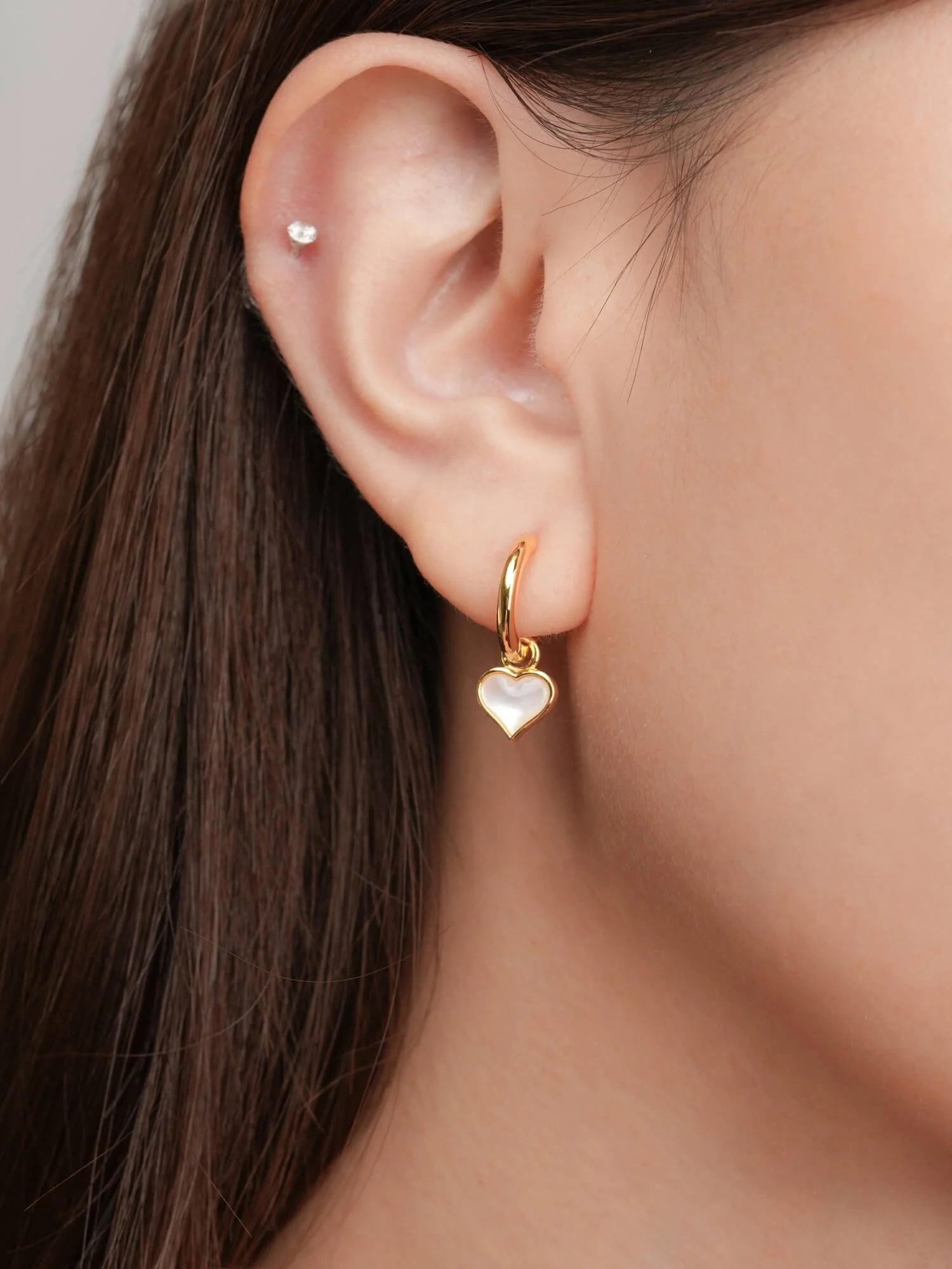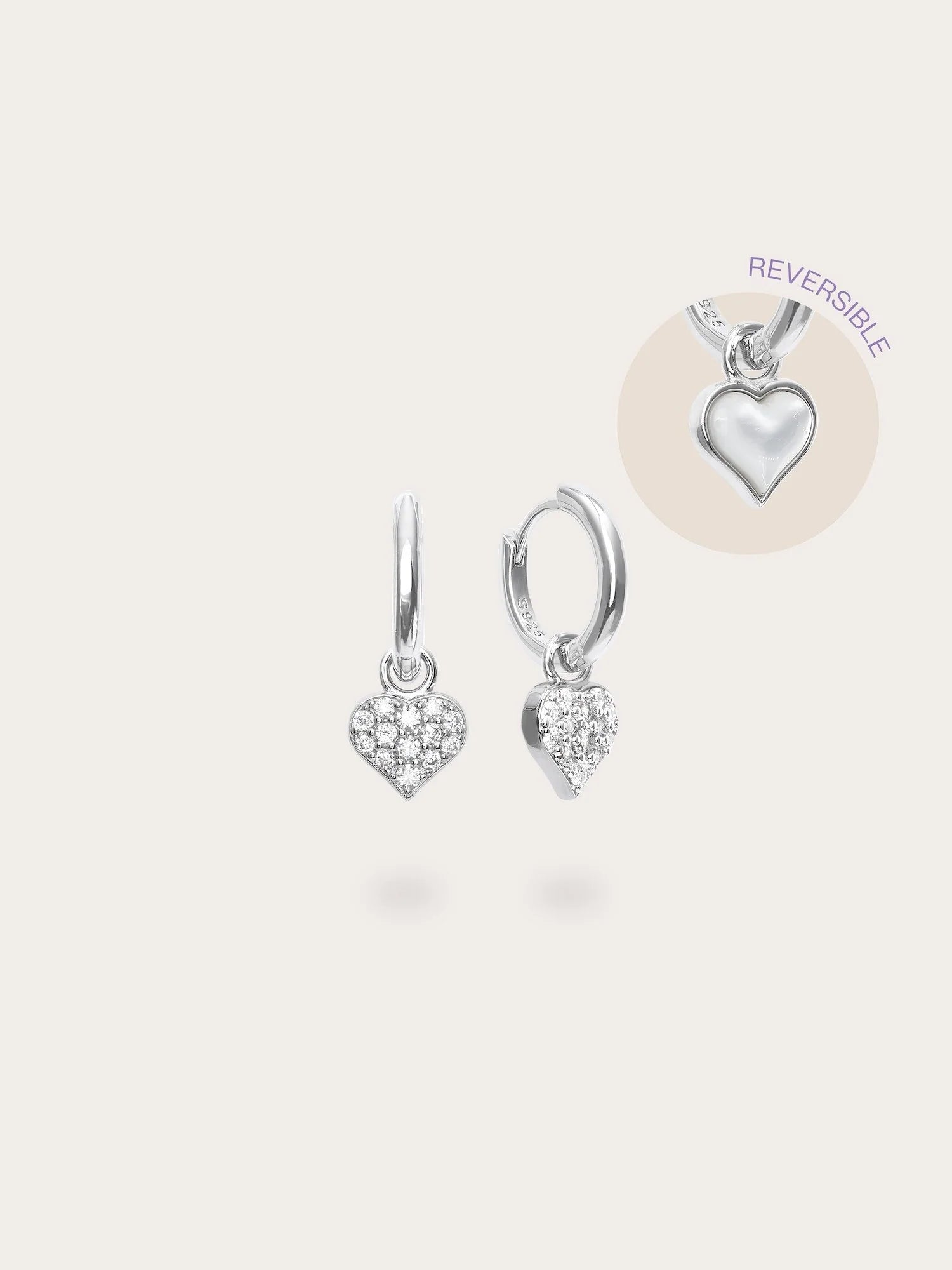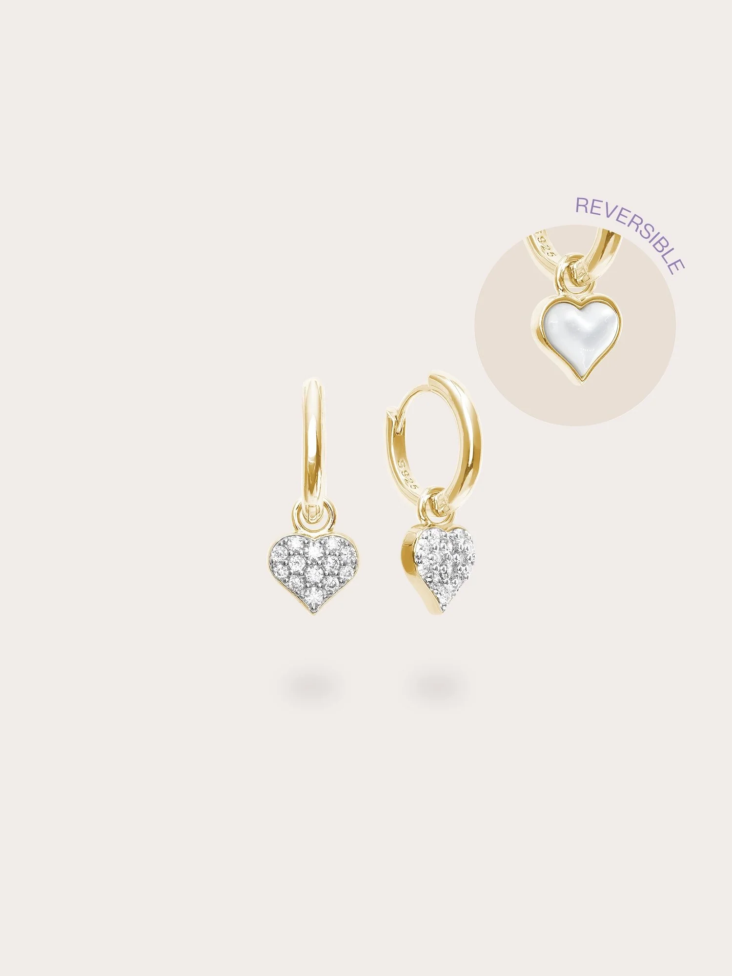 These reversible huggie earrings combine effortless elegance and versatility. One side features a delicately carved, luminous shell material, and the other side has radiant pavé - like stones. They add a touch of romance and sparkle to any outfit.