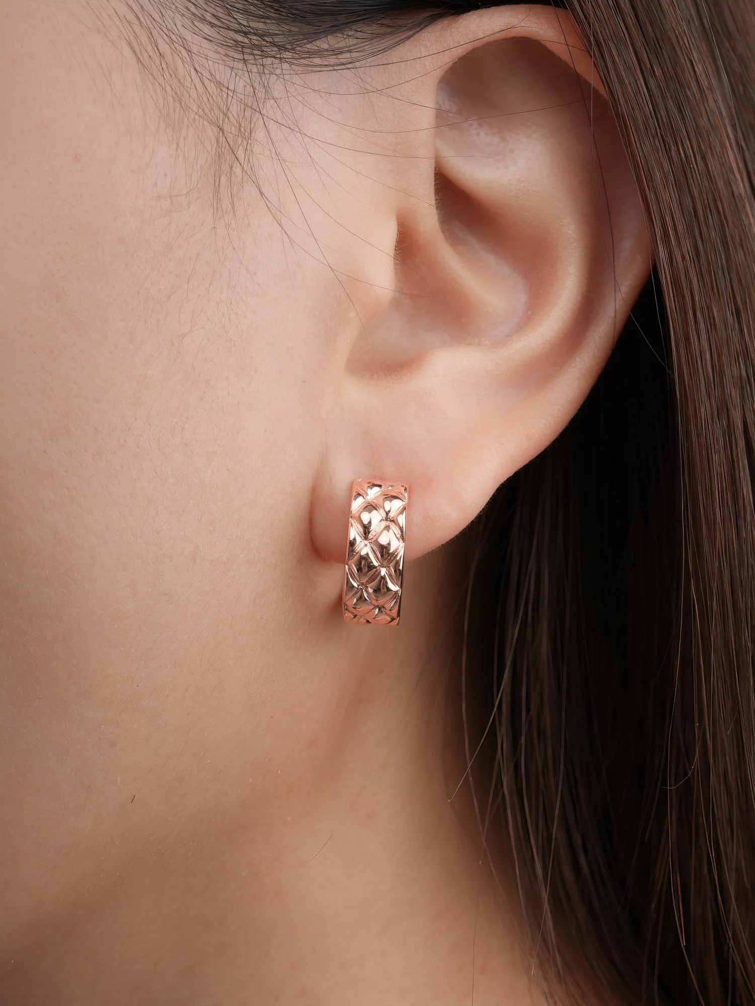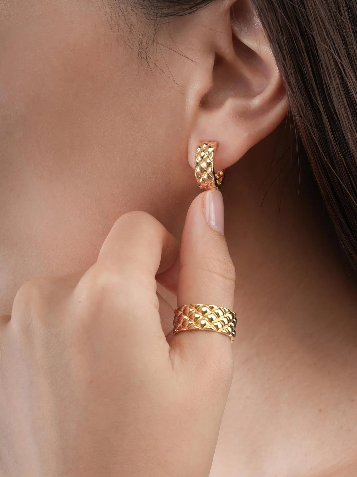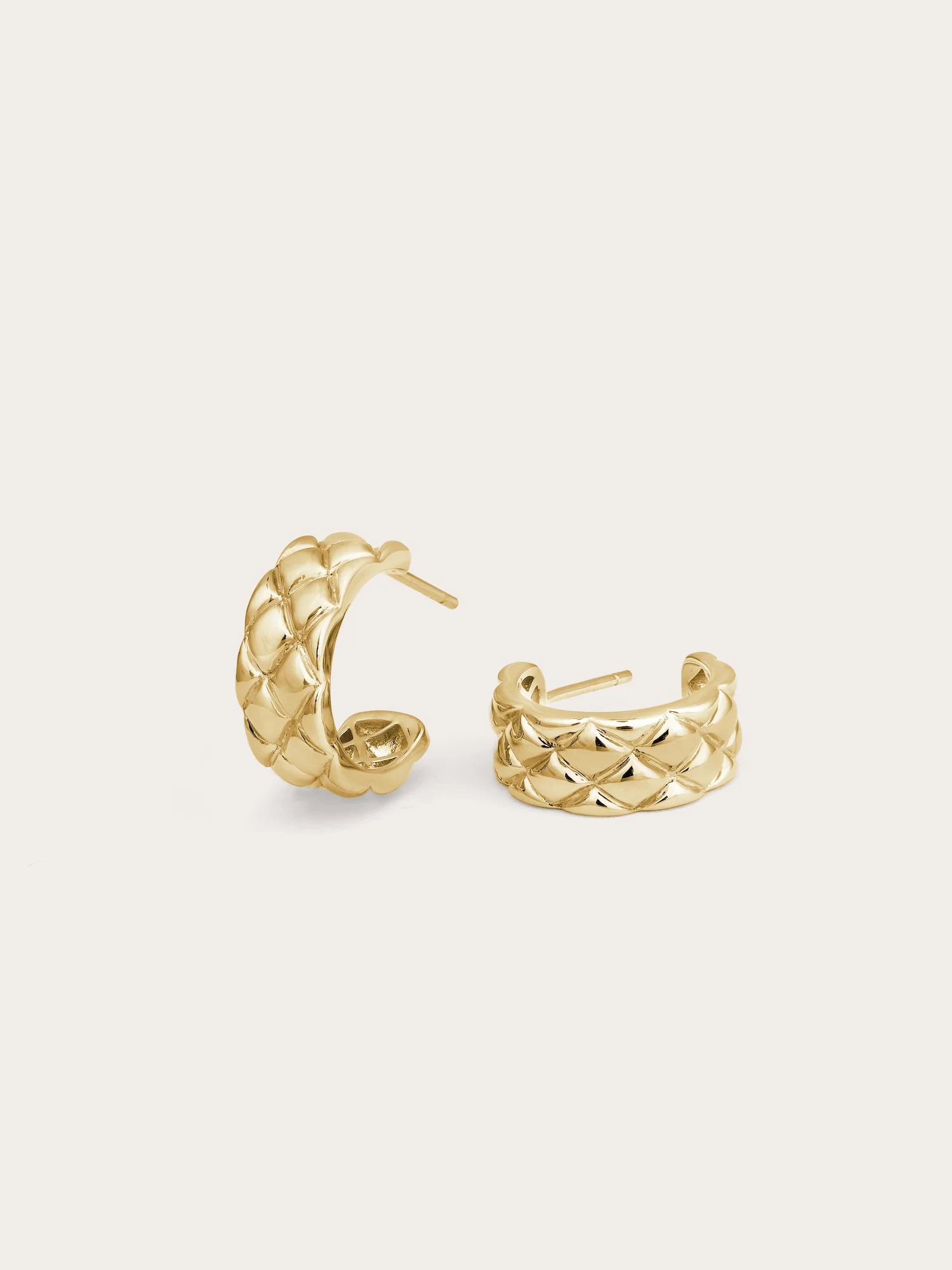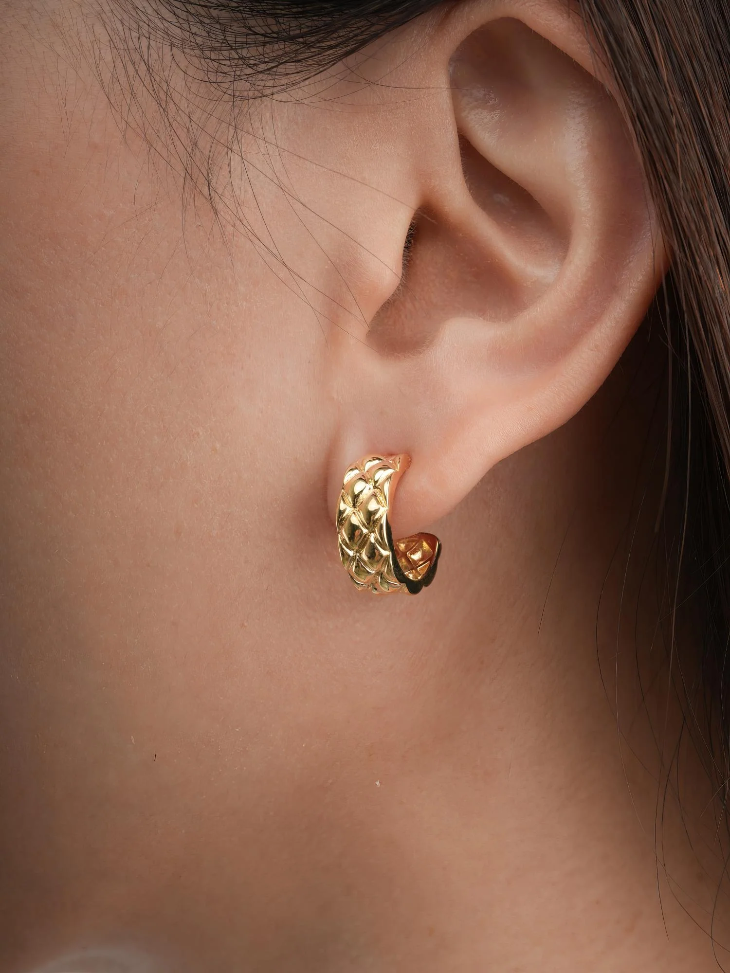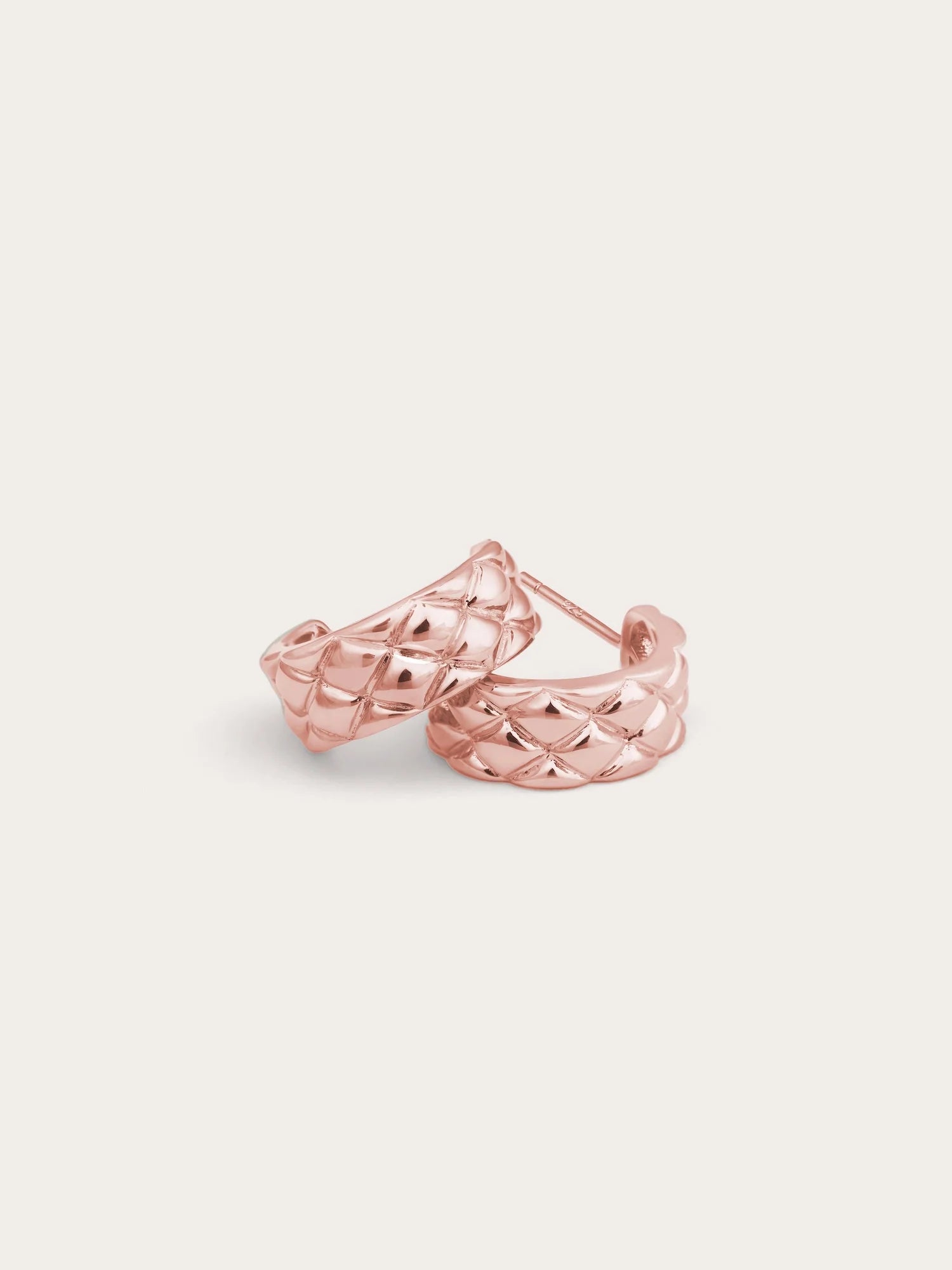 These puffy quilt hoop earrings are a standout piece inspired by vintage watch chains. They add a vintage charm to any outfit.They are handcrafted in 18k rose gold vermeil.