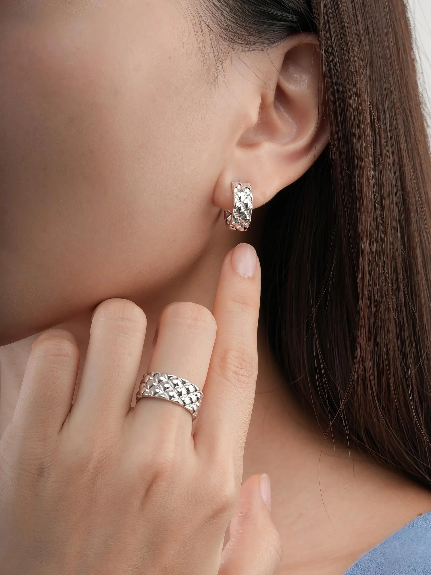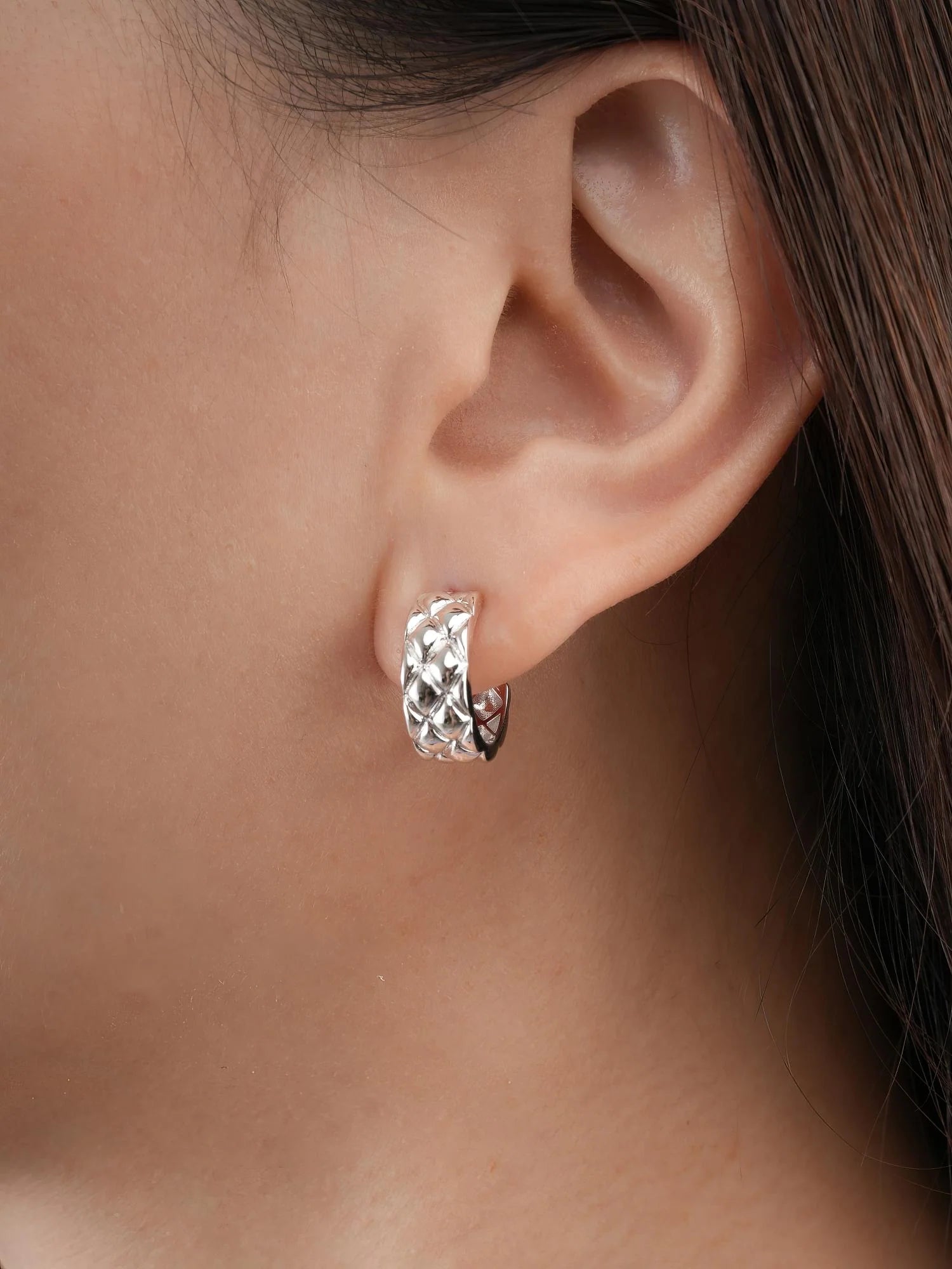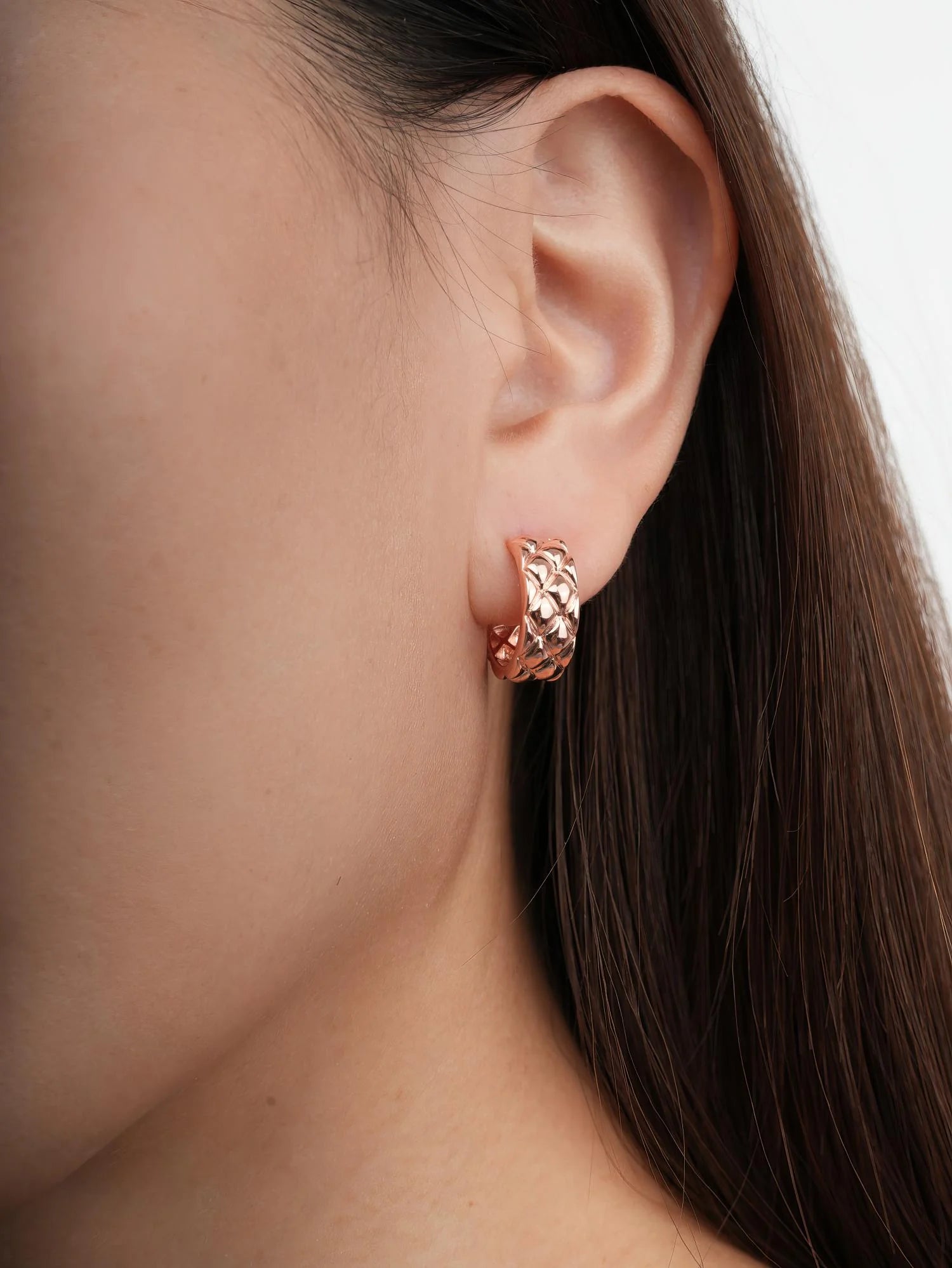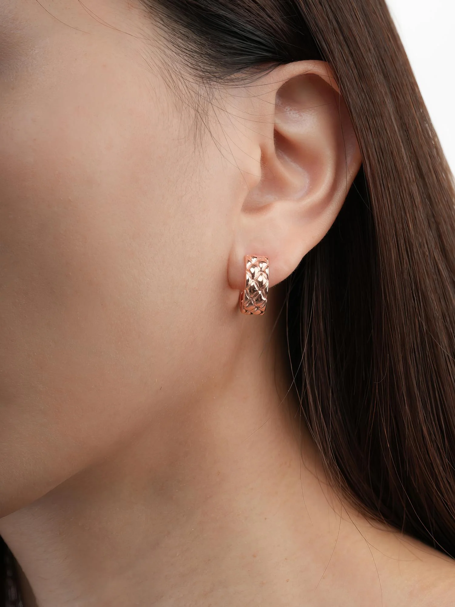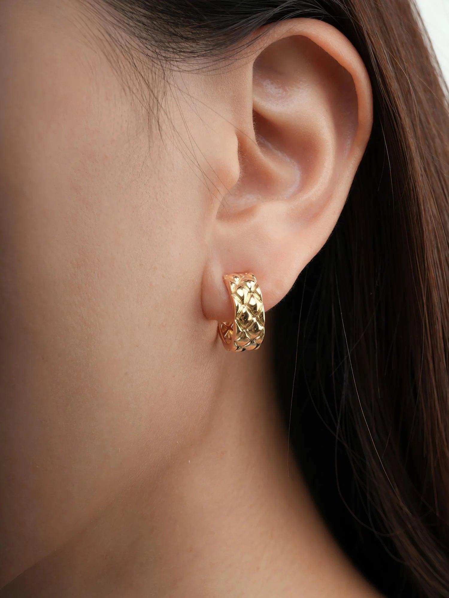 These puffy quilt hoop earrings are a standout piece inspired by vintage watch chains. They add a vintage charm to any outfit.They are handcrafted in 18k rose gold vermeil.
