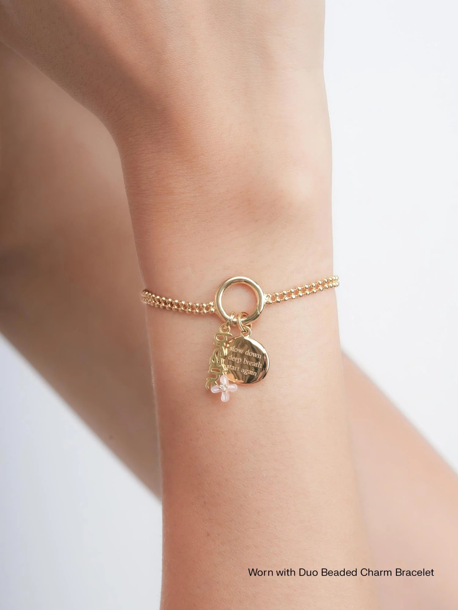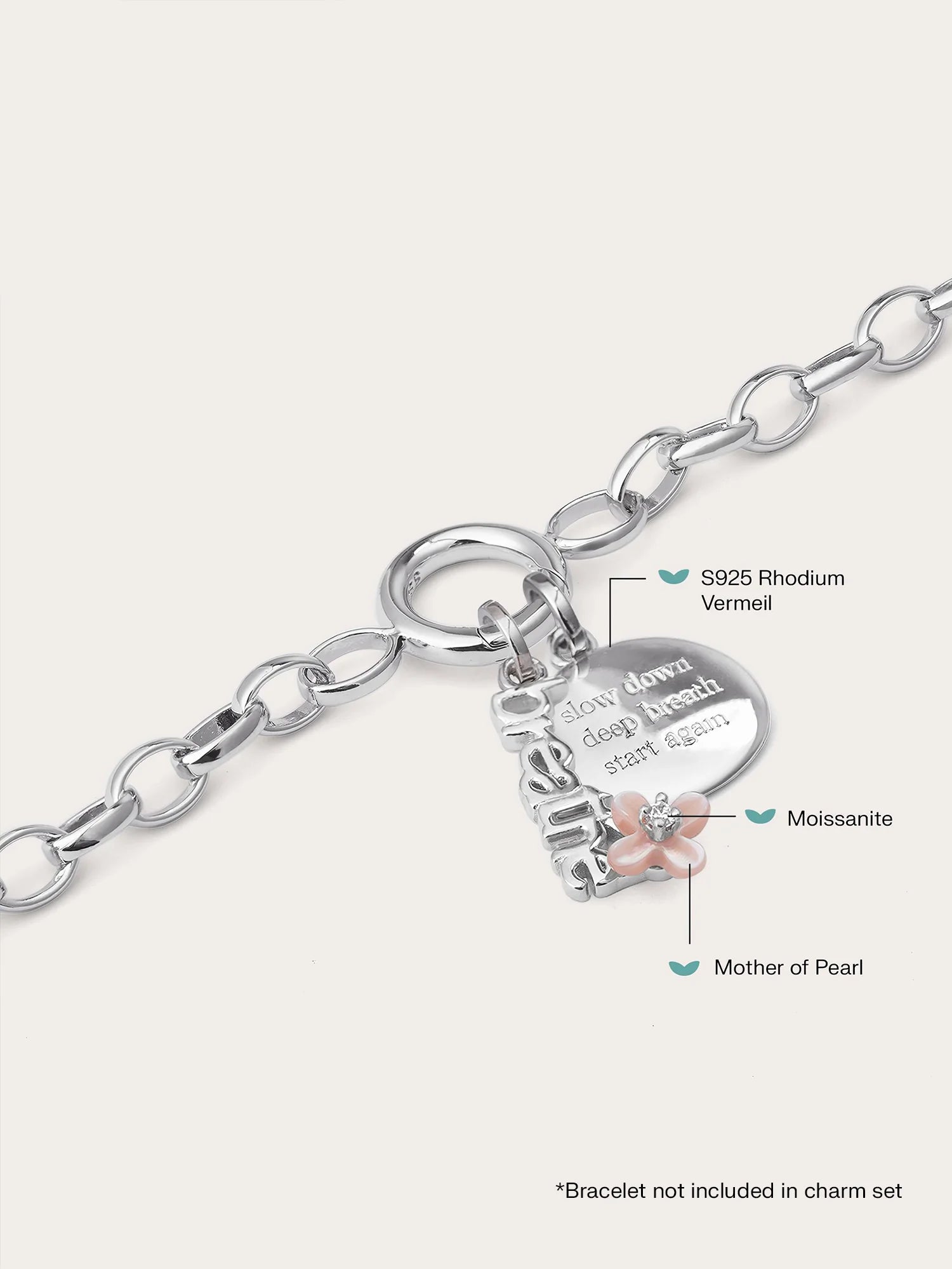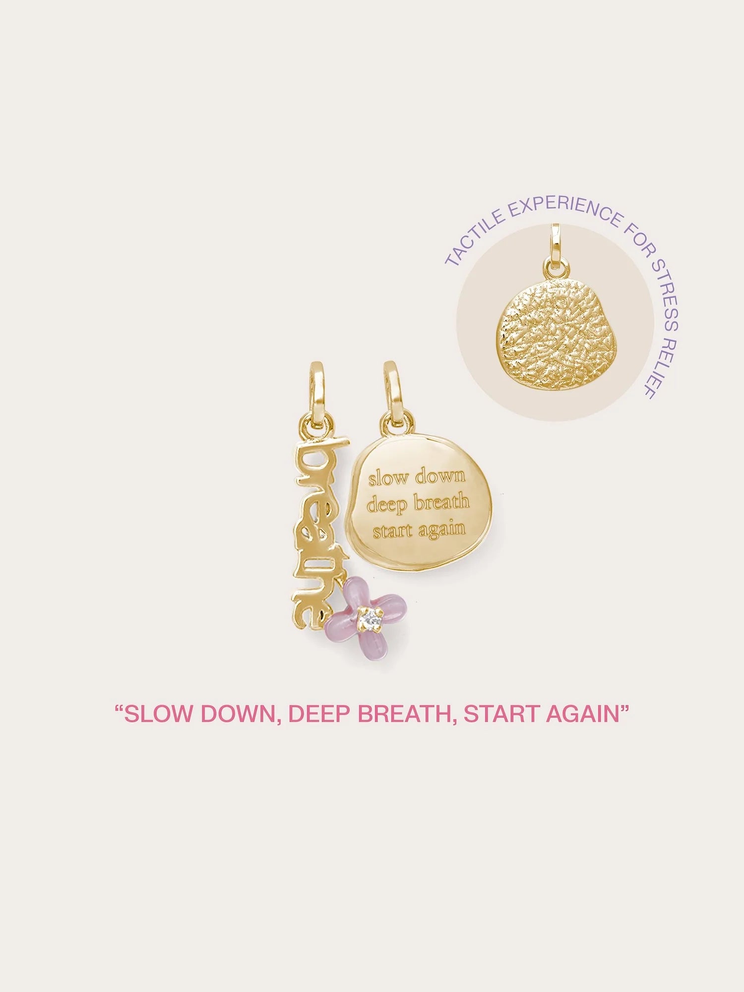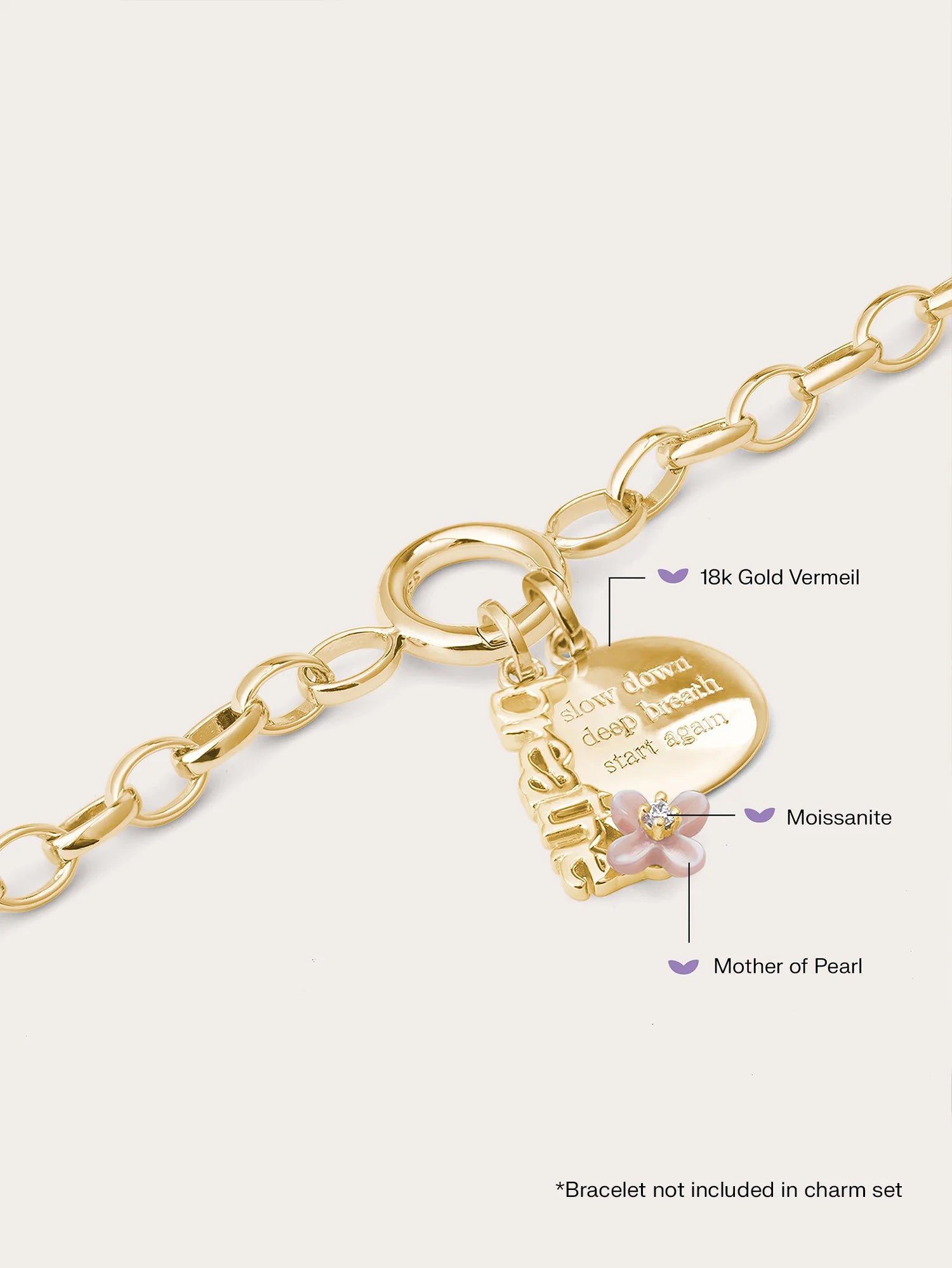 This charm set is a gentle reminder to take a break and breathe when life gets overwhelming. It's an ideal gift for those seeking peace and mindfulness. Crafted in 18k rose gold vermeil.