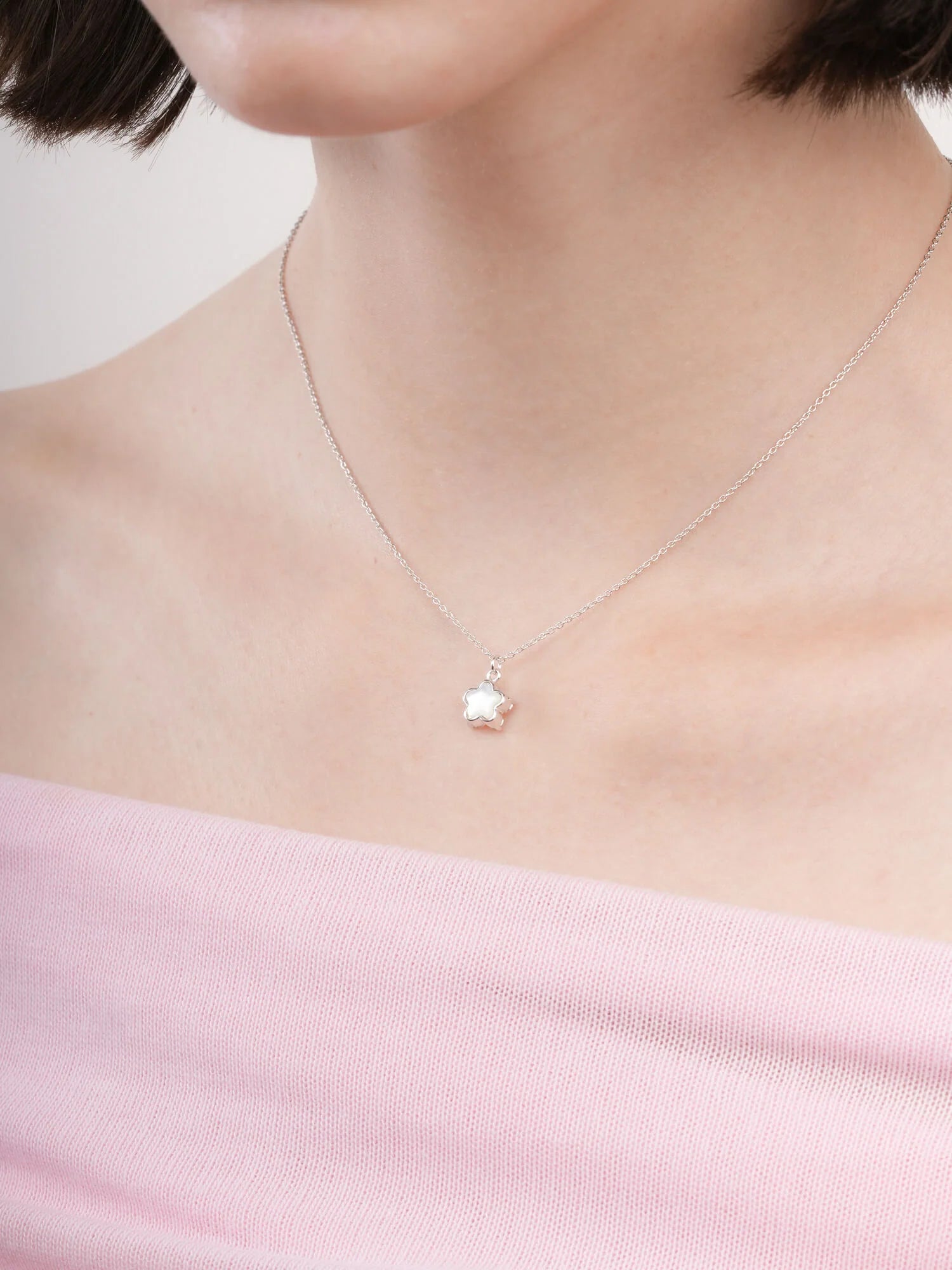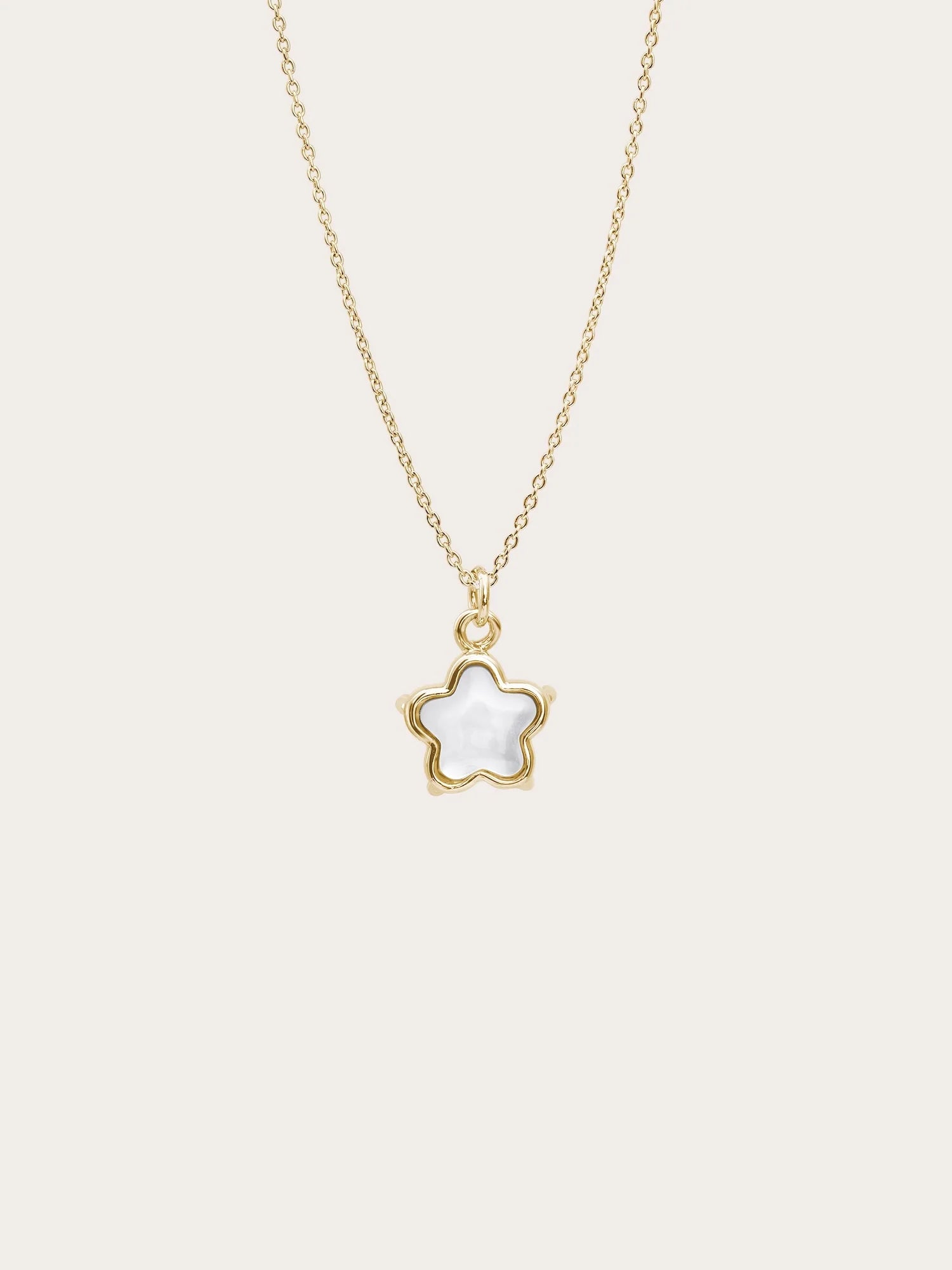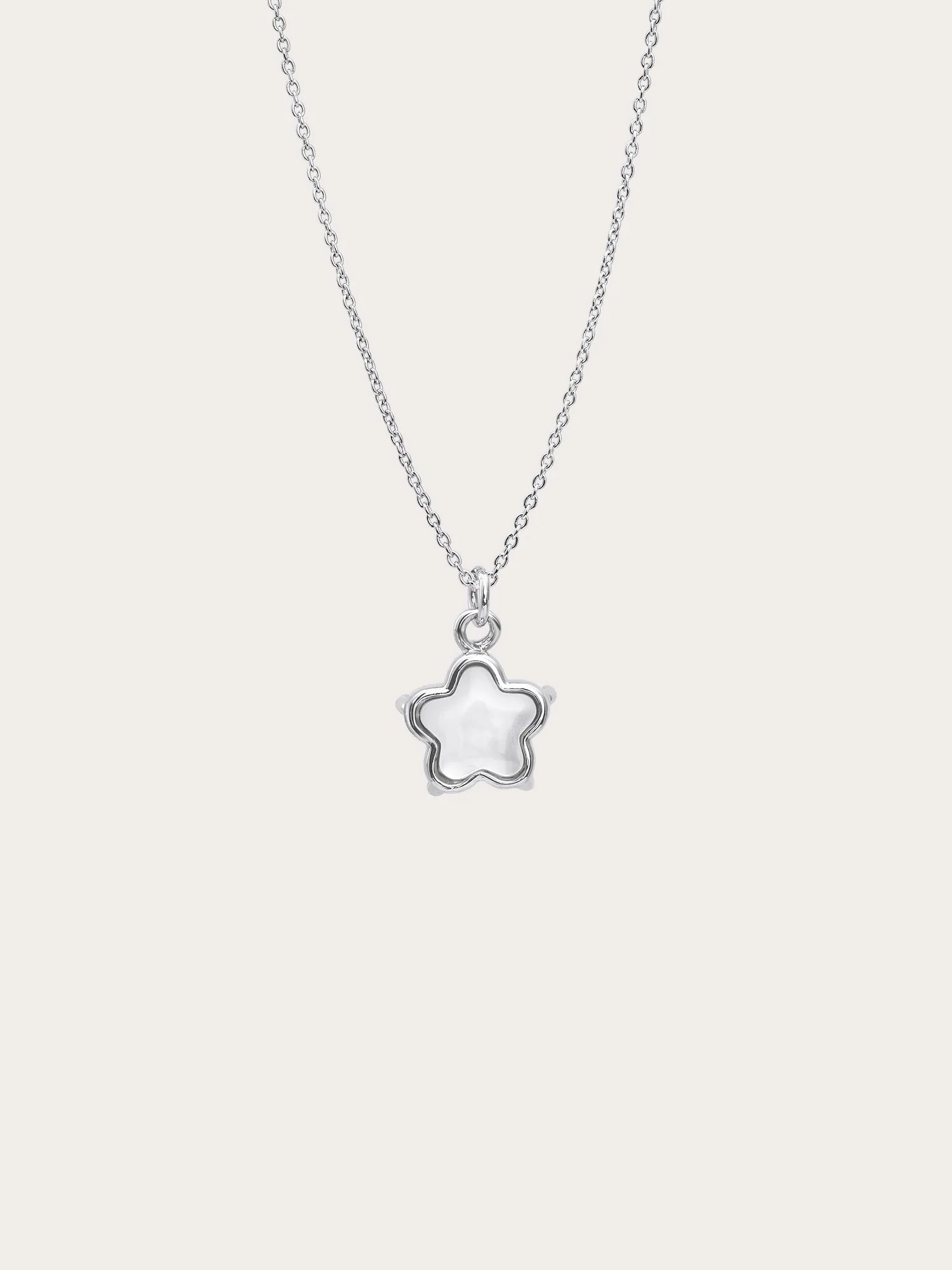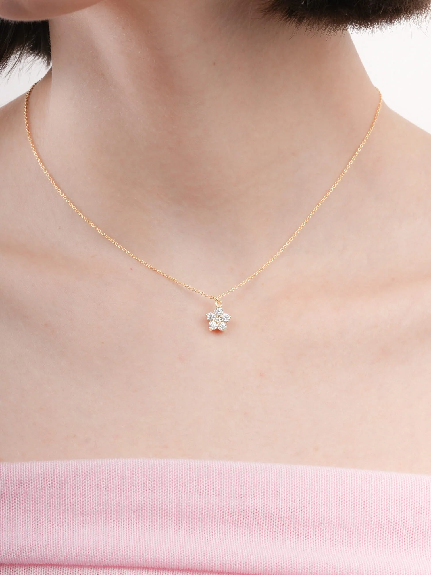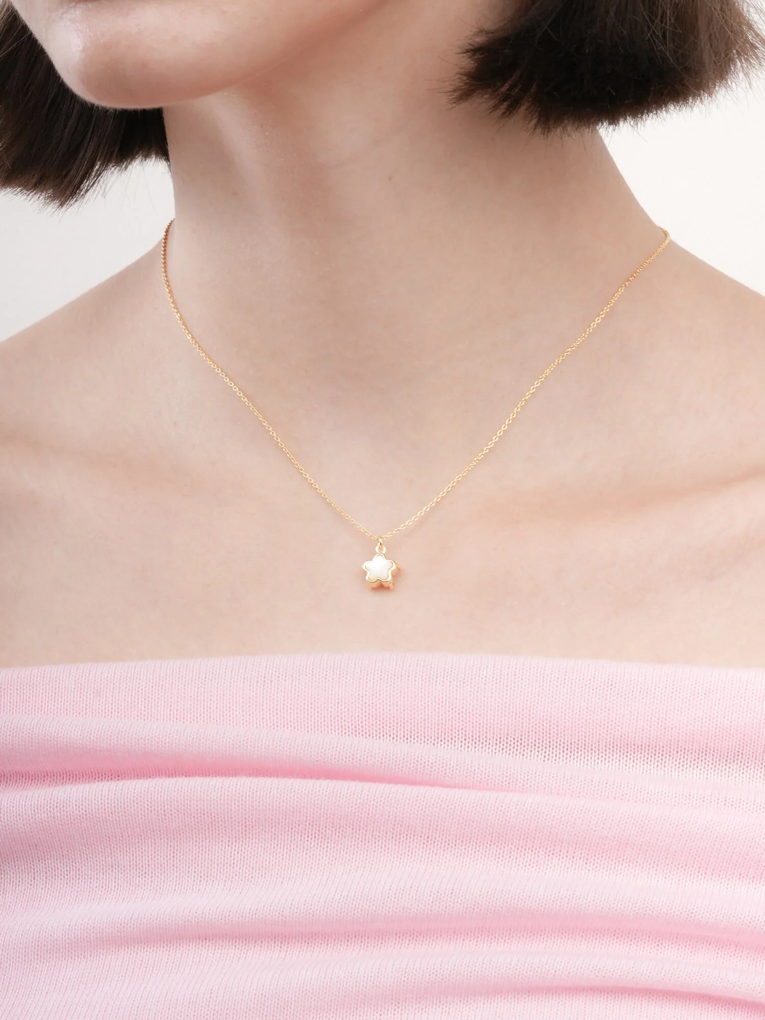 This reversible necklace has a practical two-in-one design. One side presents a finely carved puffy mother-of-pearl cherry blossom, and the other side glistens with radiant moissanites, combining softness and brilliance in one item. It's hand - crafted in 18k rose gold vermeil.