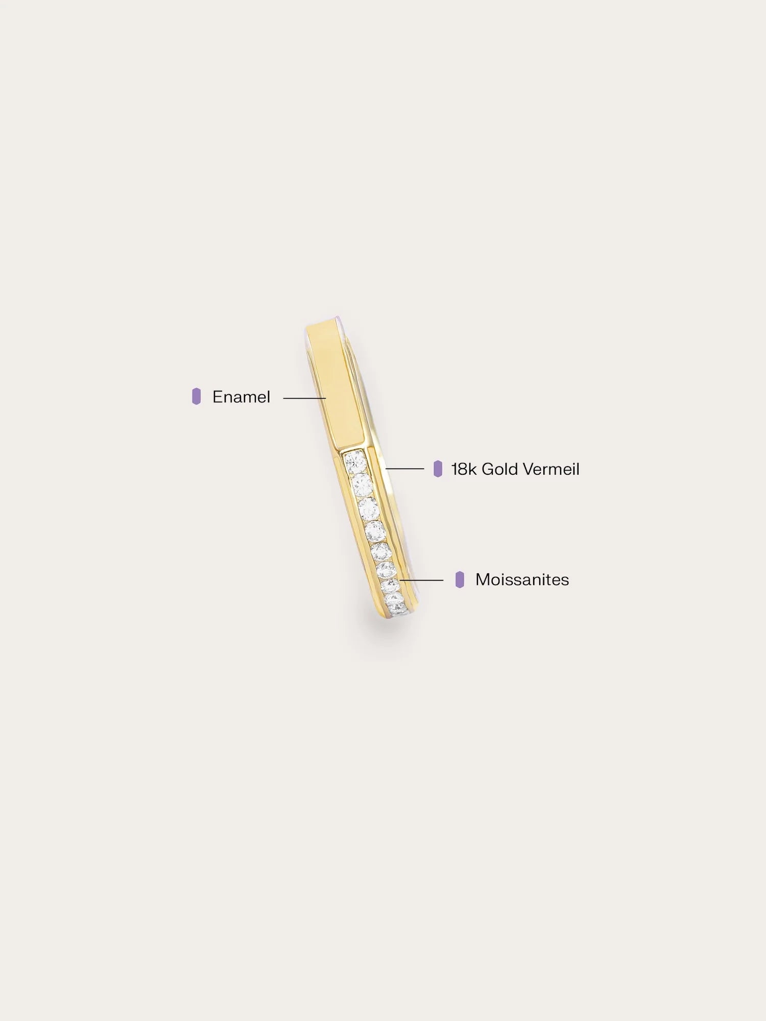 This ring is both elegant and fun. It can be stacked with other rings or worn alone. Whether you show the pastel enamel side or the sparkling moissanite side, it always looks polished for daily wear.