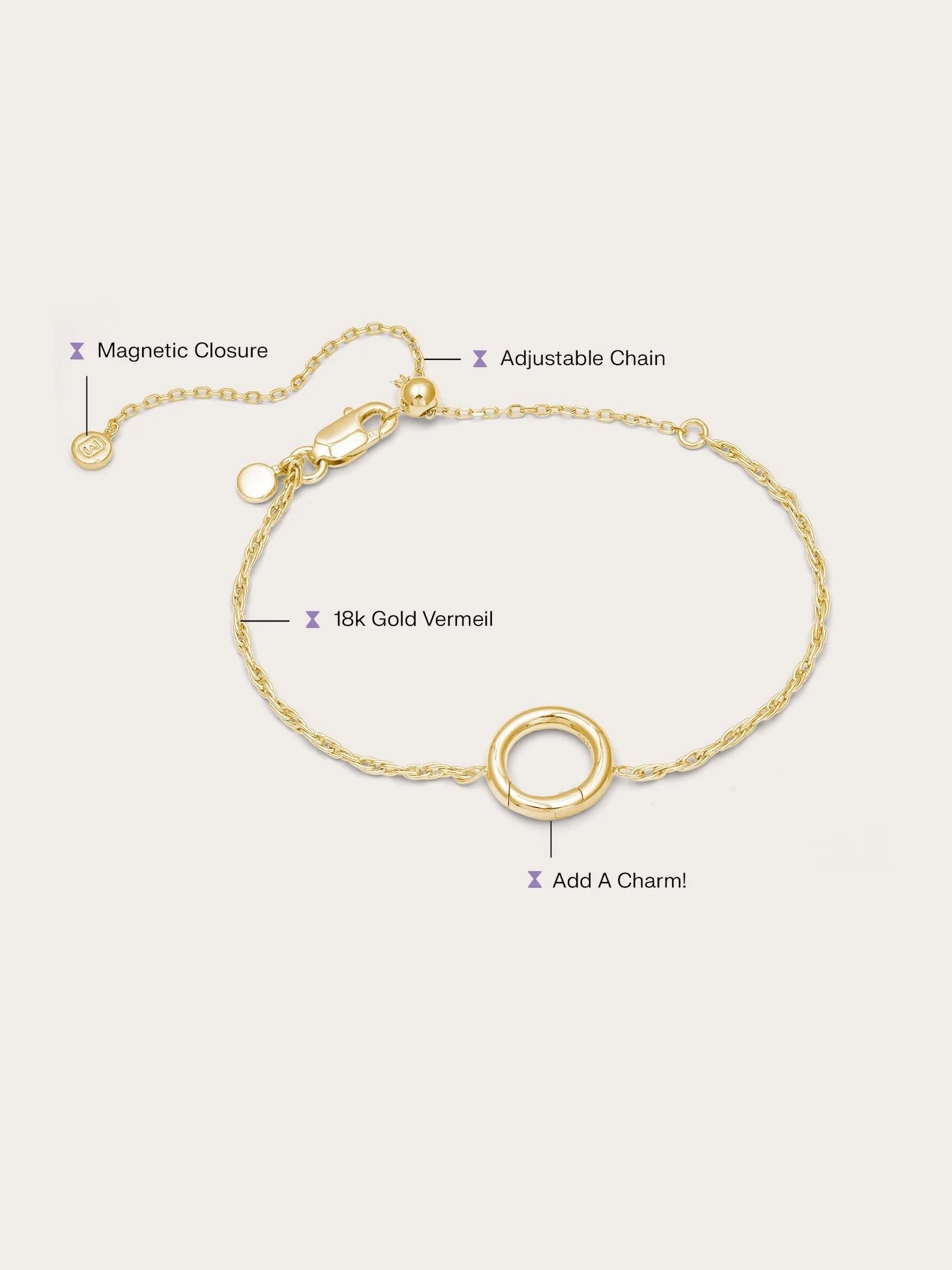 This rope chain charm bracelet can be worn alone for an elegant style or used as a base to display your favorite charms. It is hand - crafted with 18k gold vermeil.