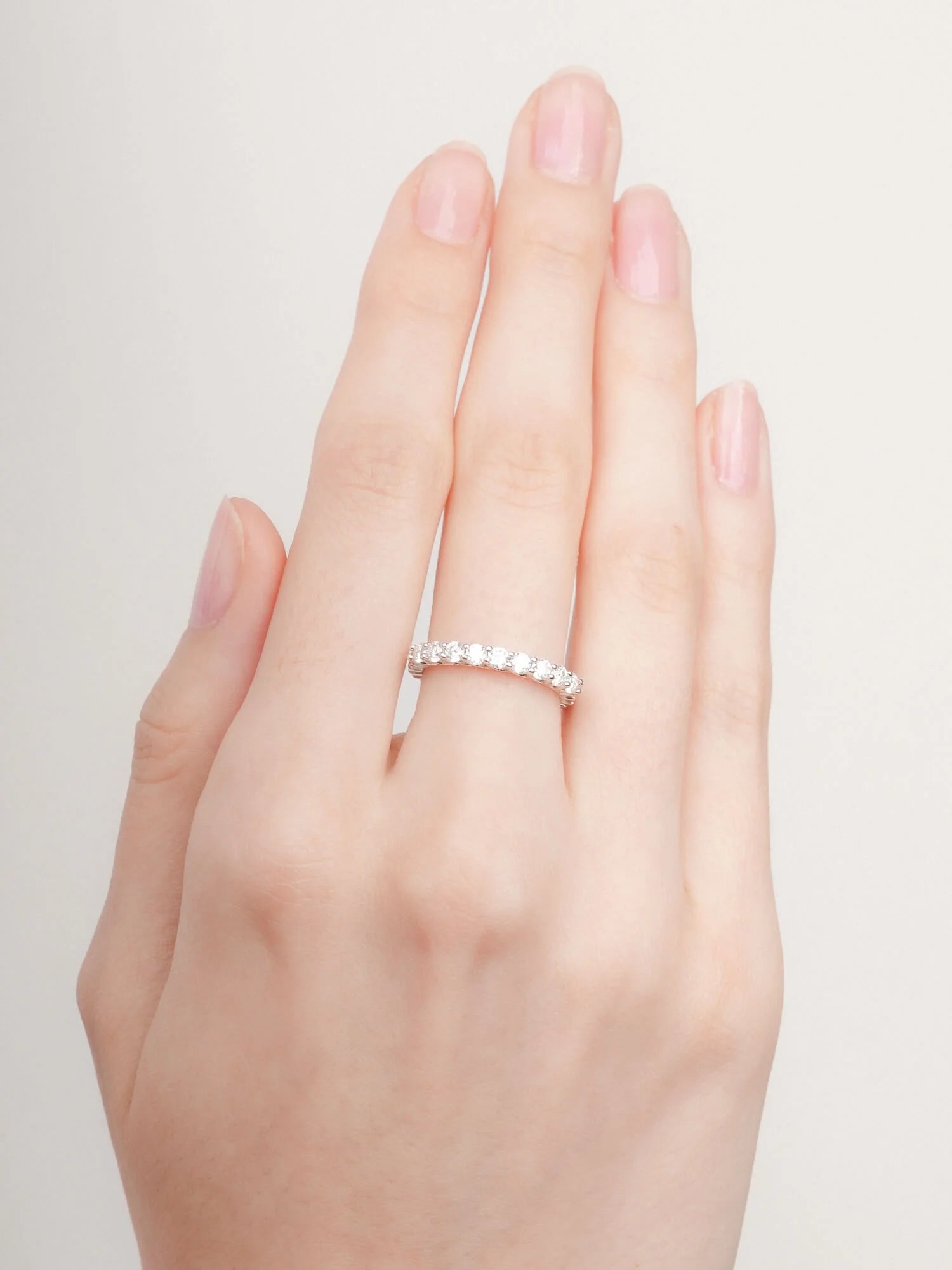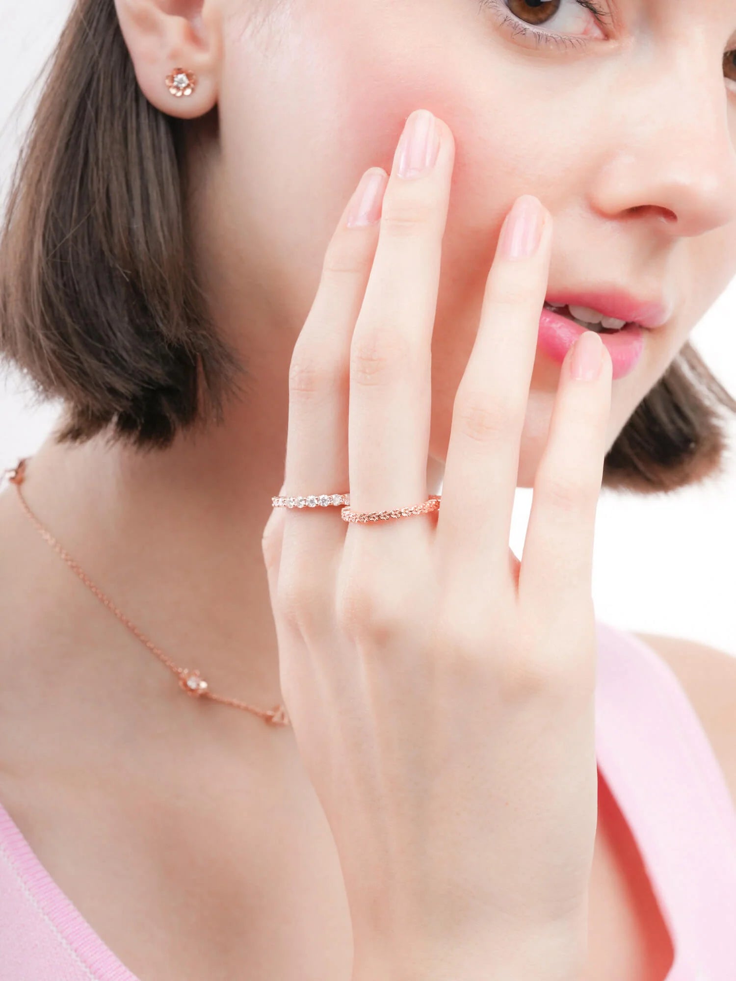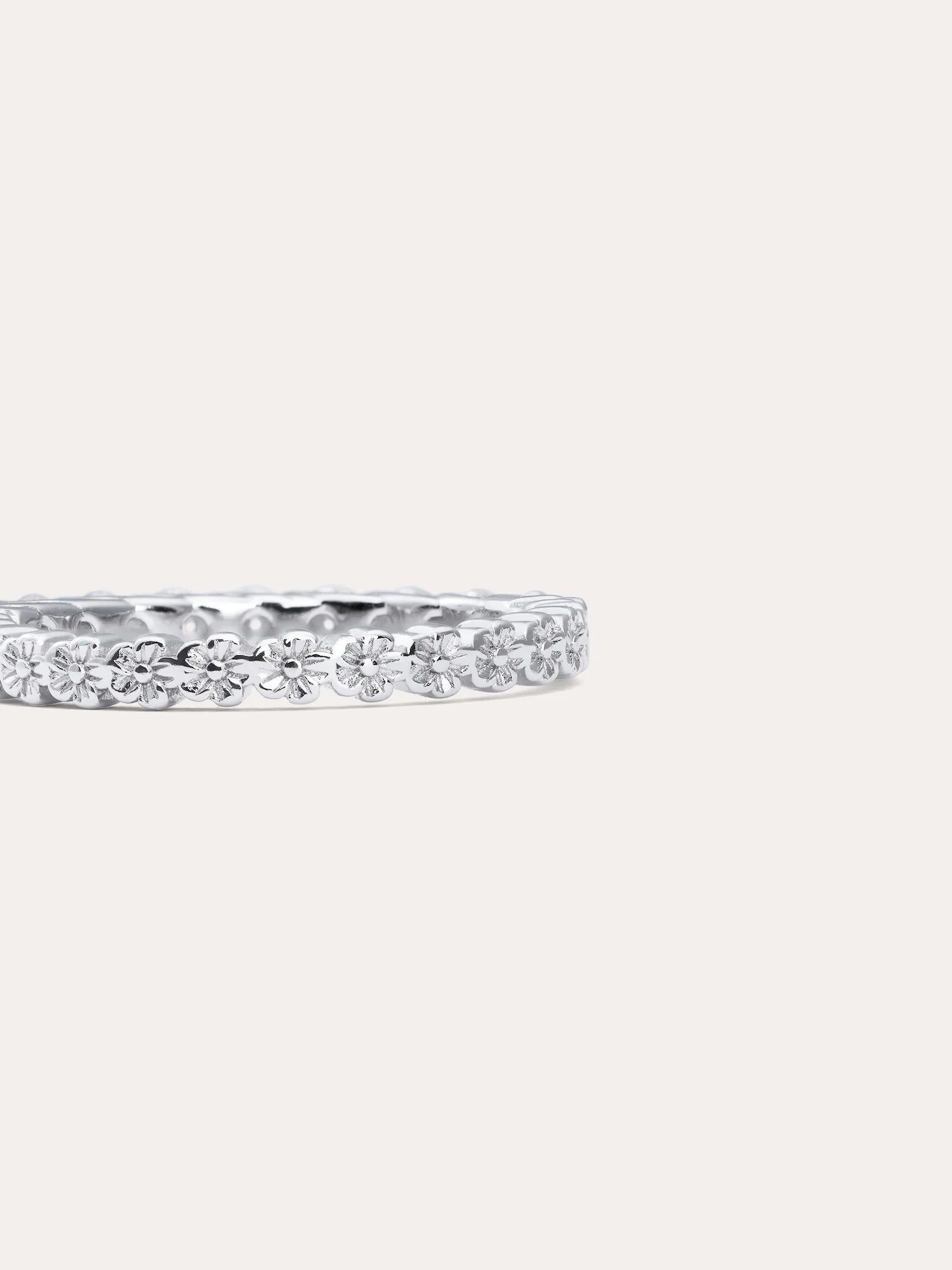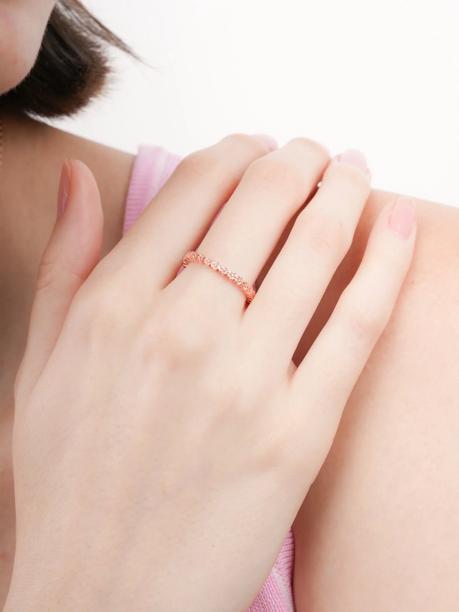 The Sakura Moissanite Eternity Band features a versatile two-in-one design - one side lined with moissanites for a clean, timeless sparkle, and the other adorned with dainty sakura motifs for a soft, feminine touch. Handcrafted in 18k gold vermeil.