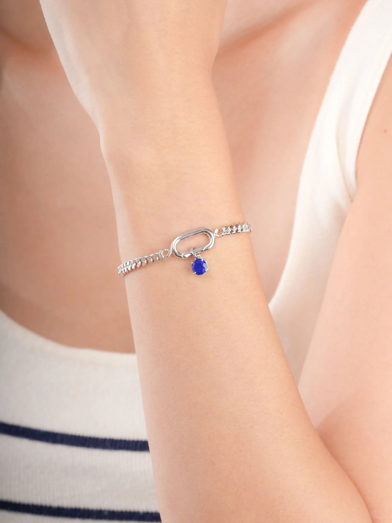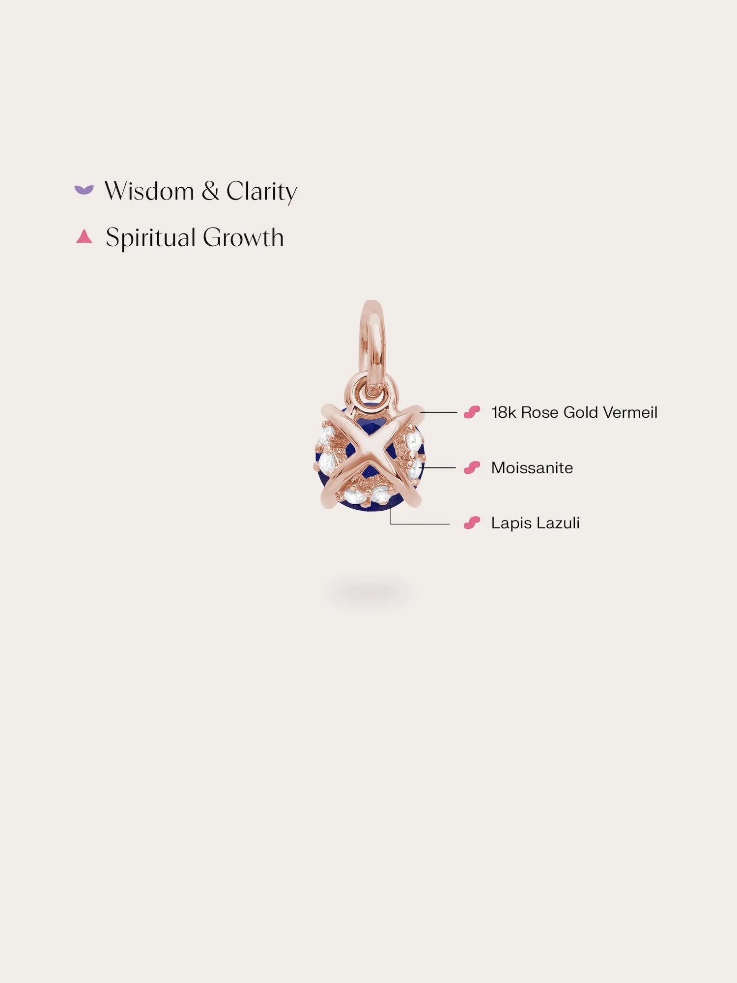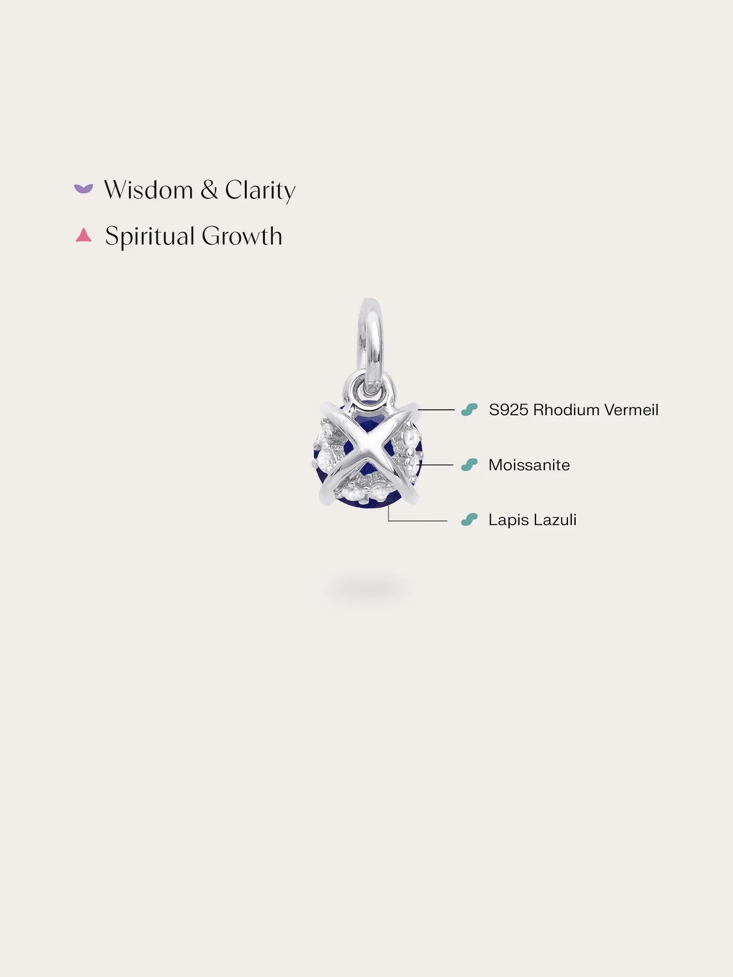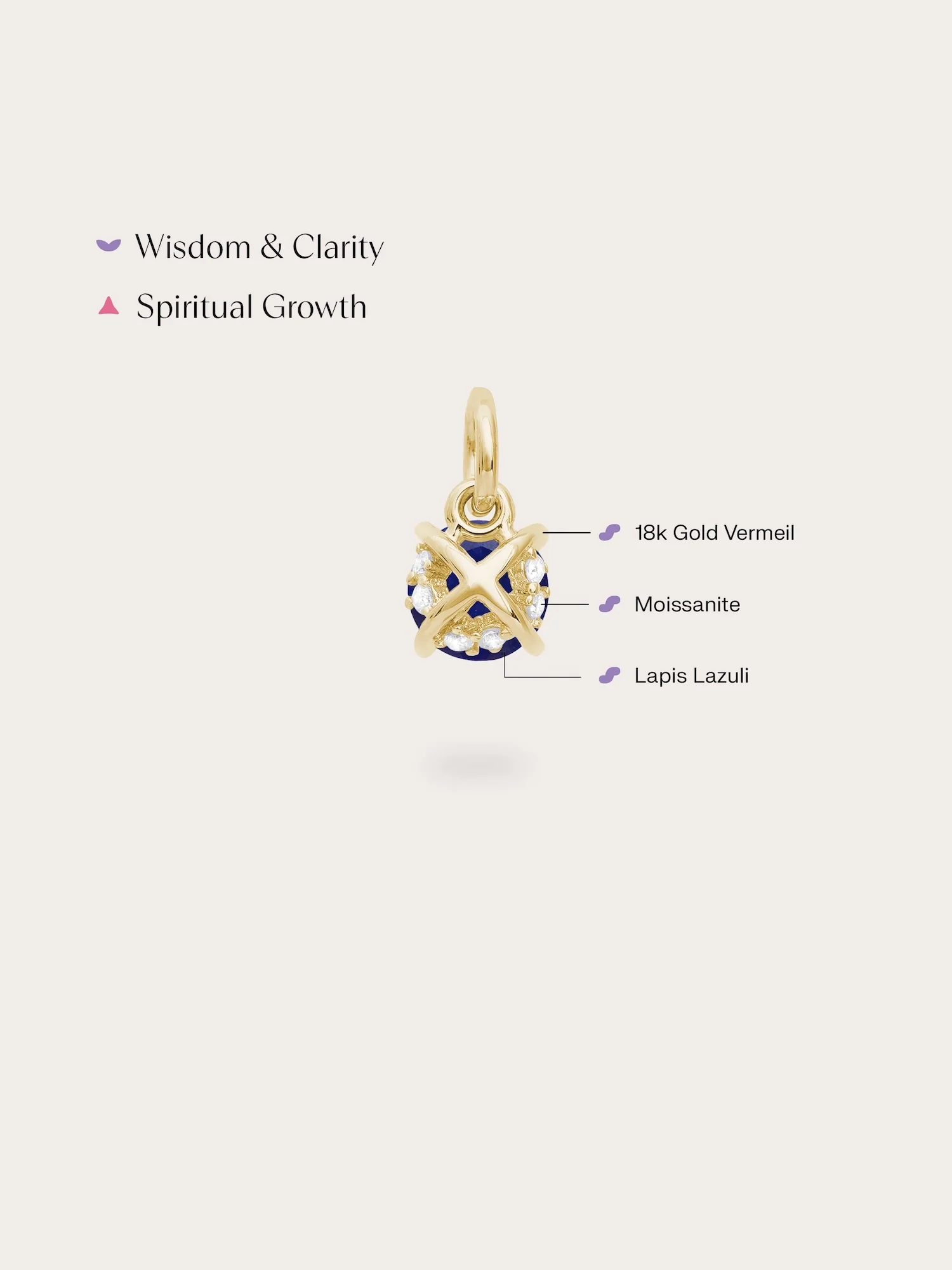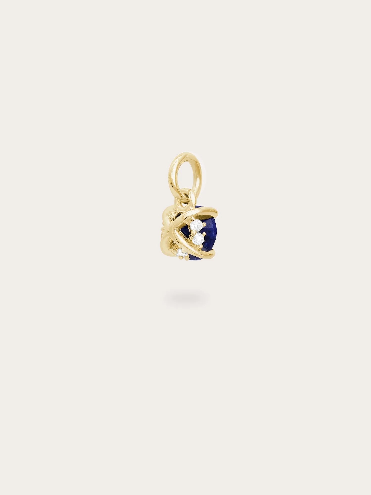 It has a modern touch with a hidden \"X\" on the back. Small accent stones are carefully placed under the main stone. These details make the charm more eye - catching, adding depth and sparkle. It's hand - made with 18k gold vermeil.