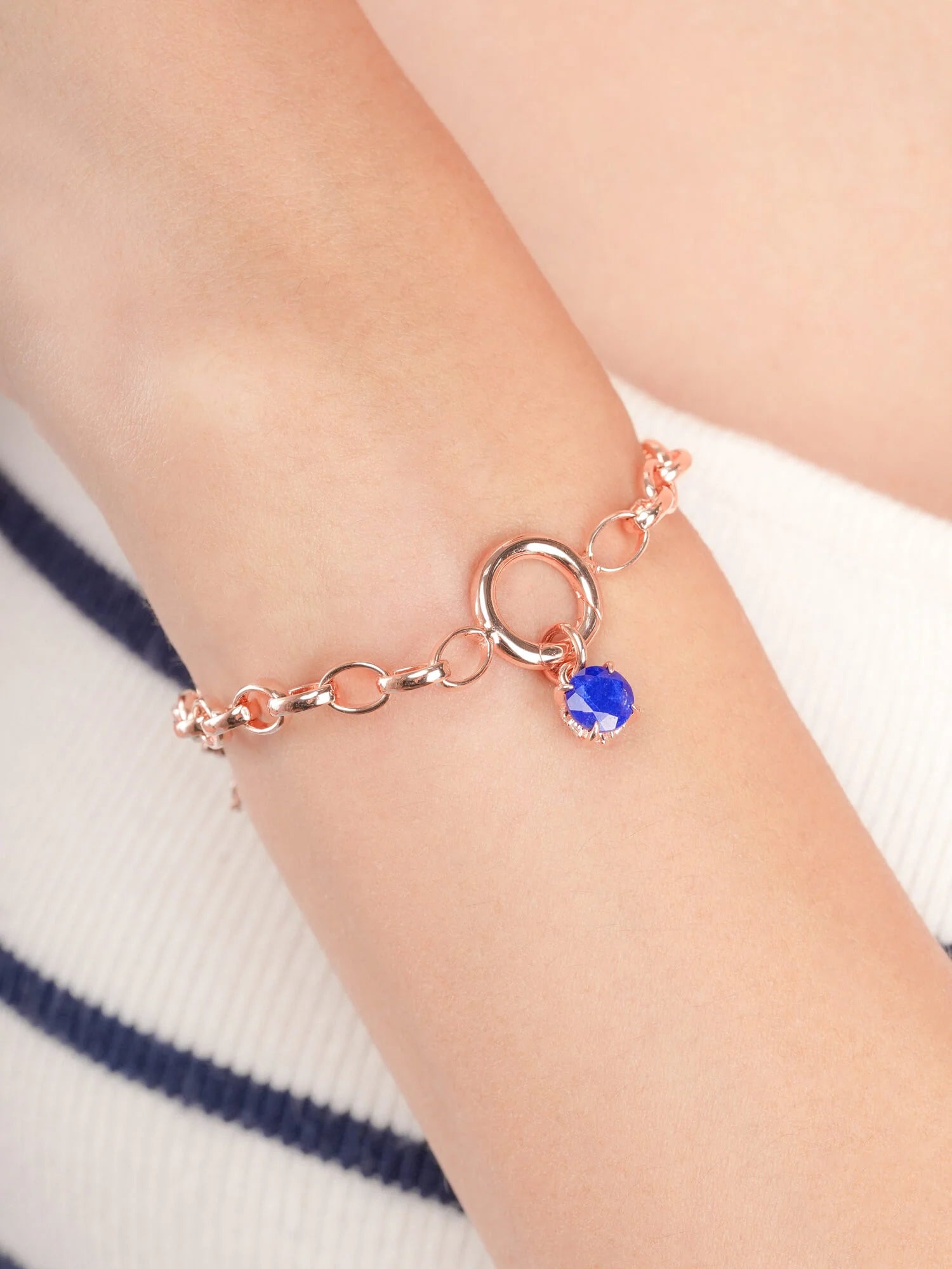 This charm features a natural lapis lazuli, set in a design inspired by the classic “XO” symbol, which represents love and connection.