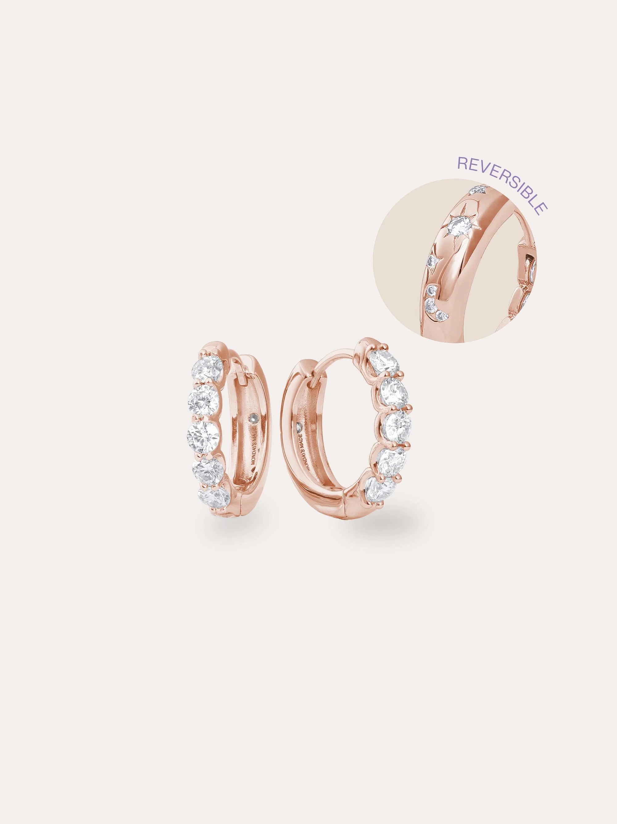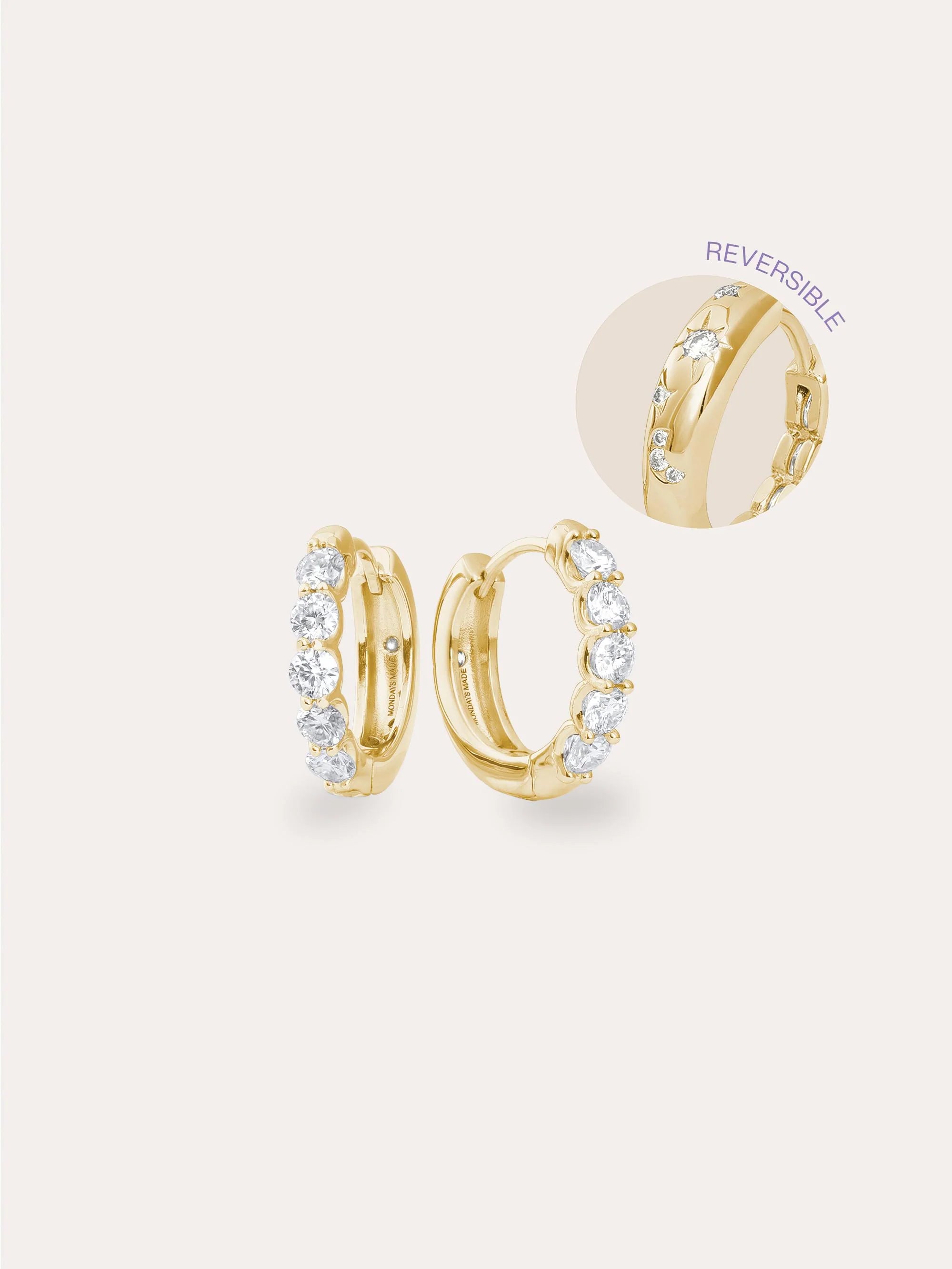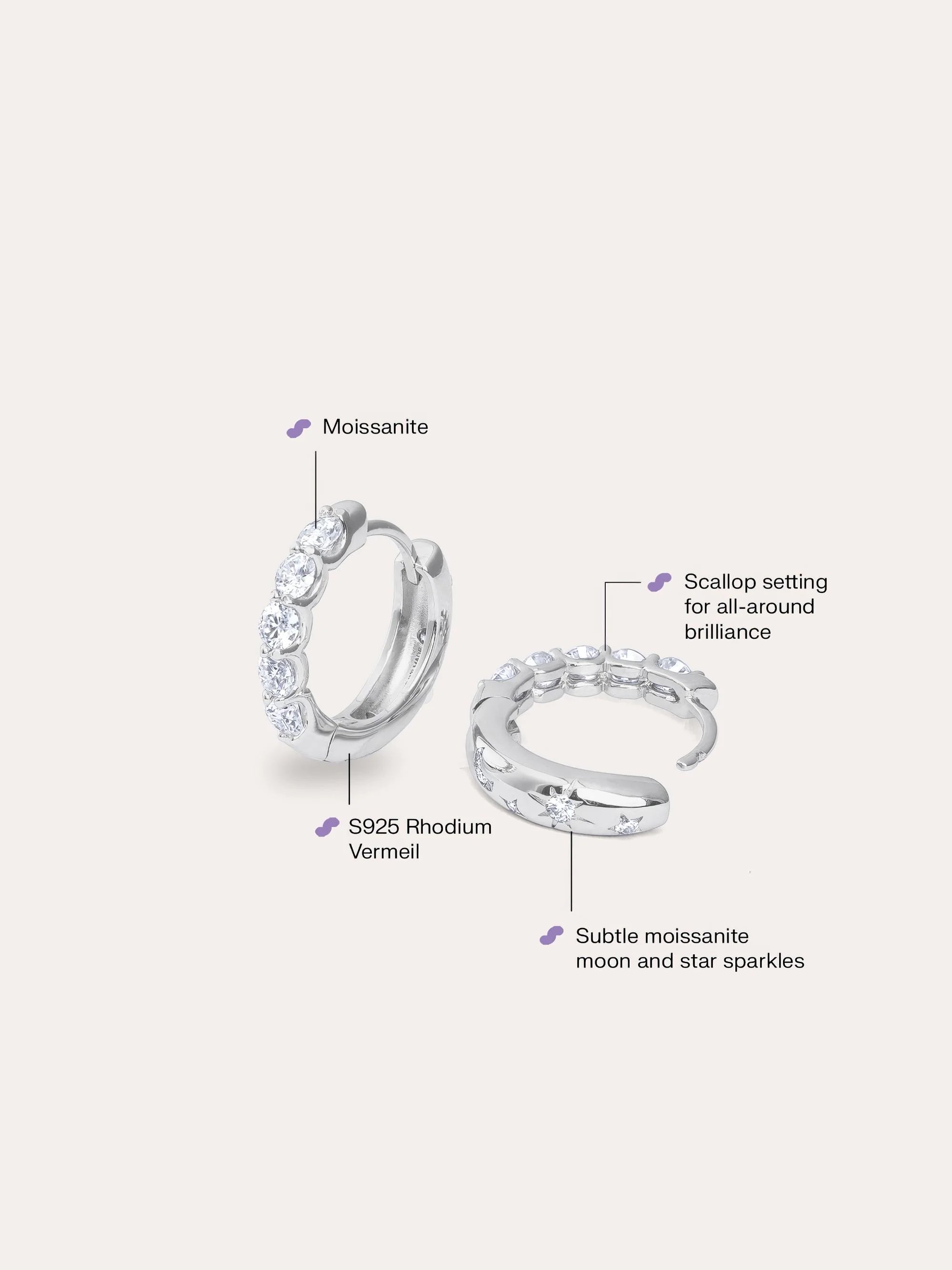 Discover the magic of winter with our Snowfall White Moissanite Reversible Huggie Earrings. These earrings capture the wonder of witnessing your first snowfall with brilliant white moissanite stones. Handcrafted in S925 rhodium vermeil.