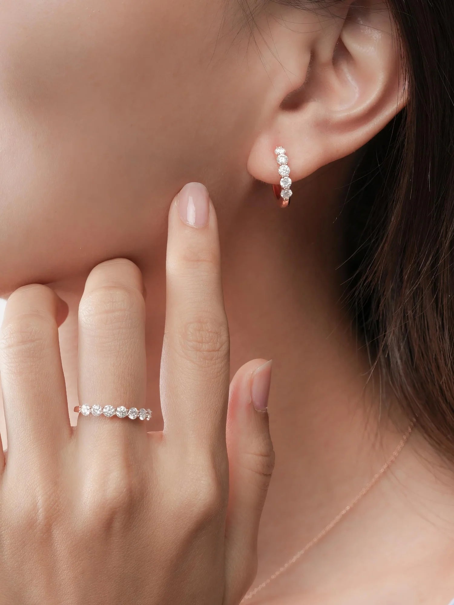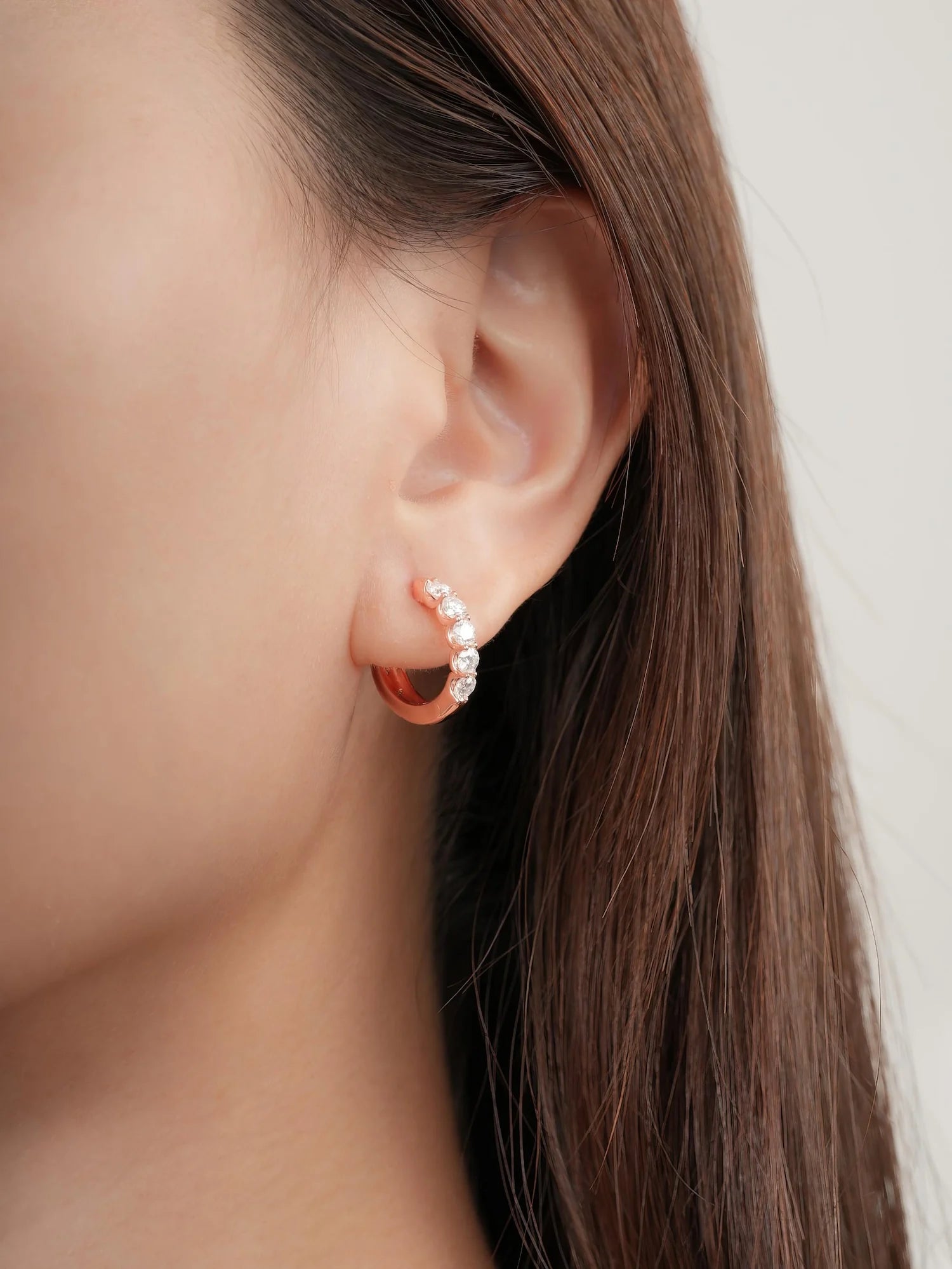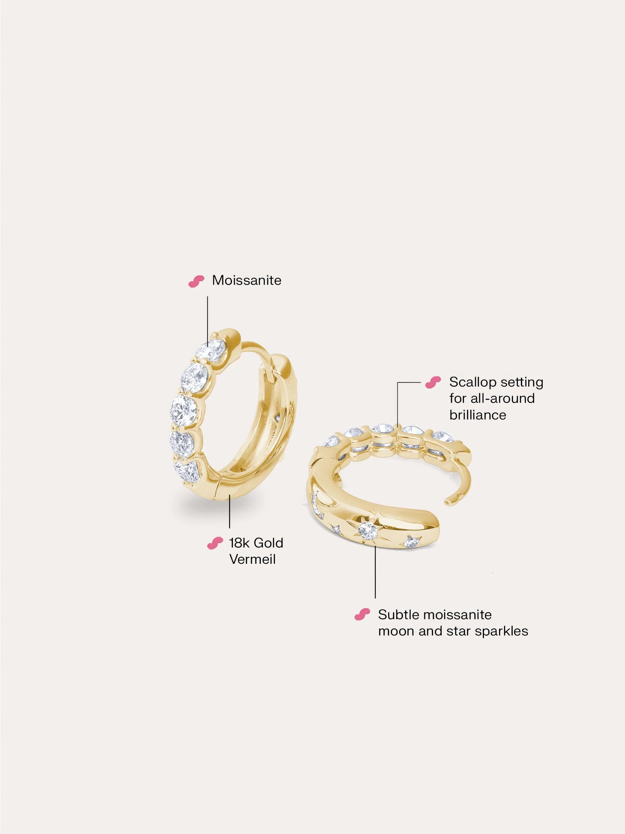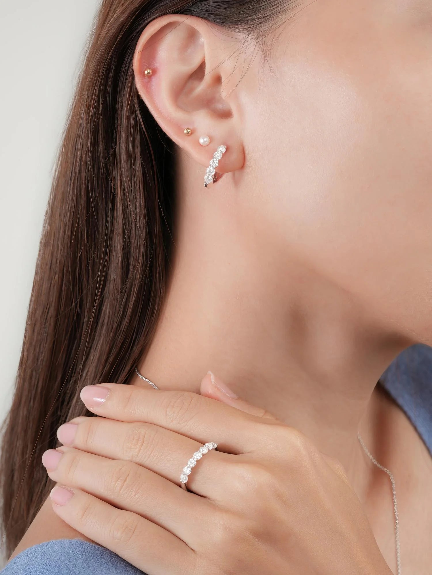 Discover the magic of winter with our Snowfall White Moissanite Reversible Huggie Earrings. These earrings capture the wonder of witnessing your first snowfall with brilliant white moissanite stones. Handcrafted in S925 rhodium vermeil.