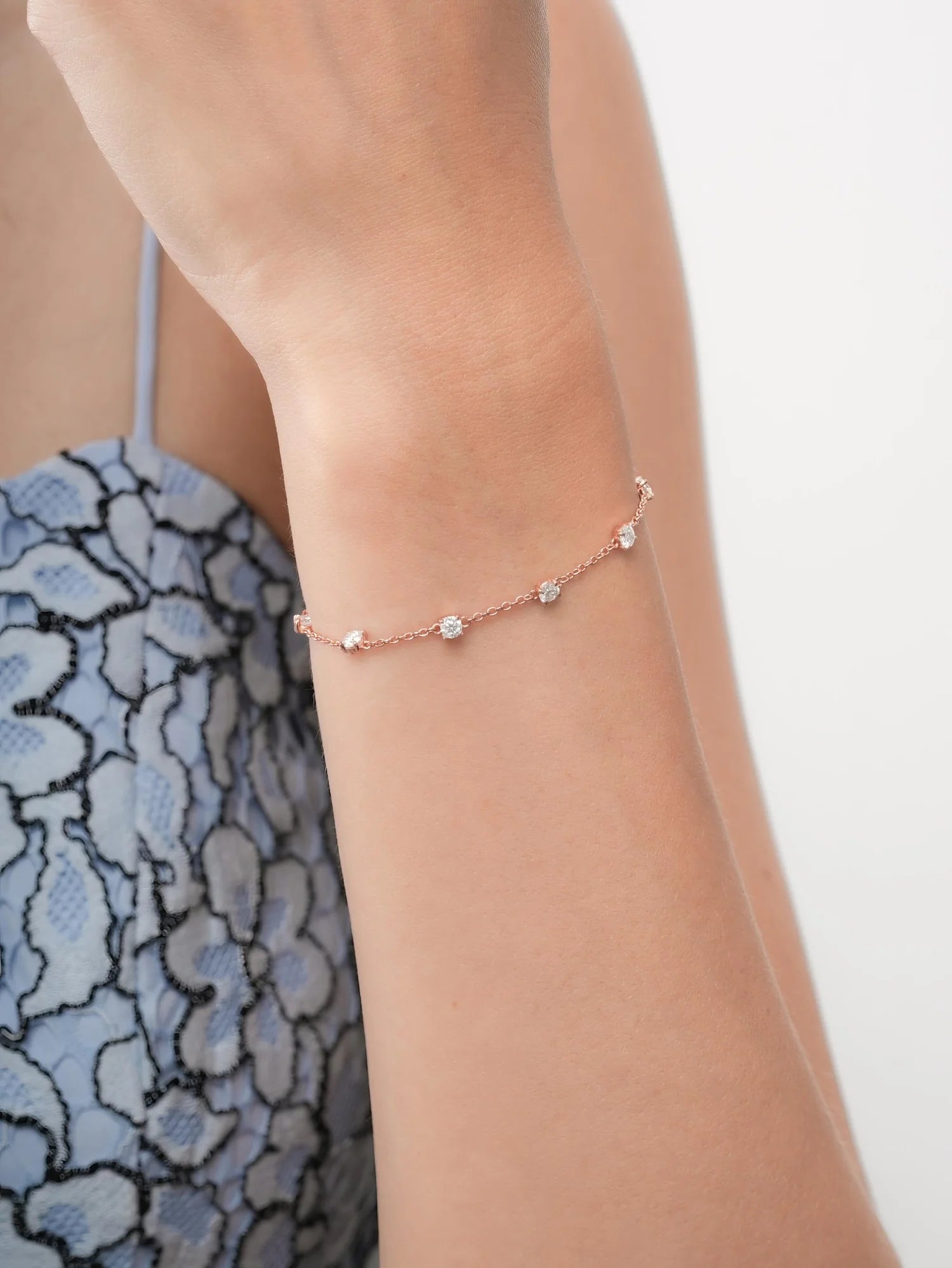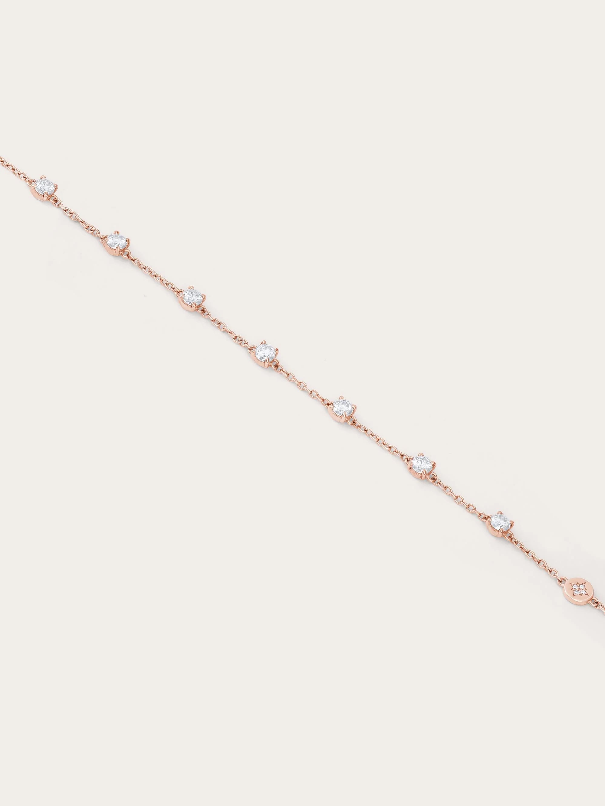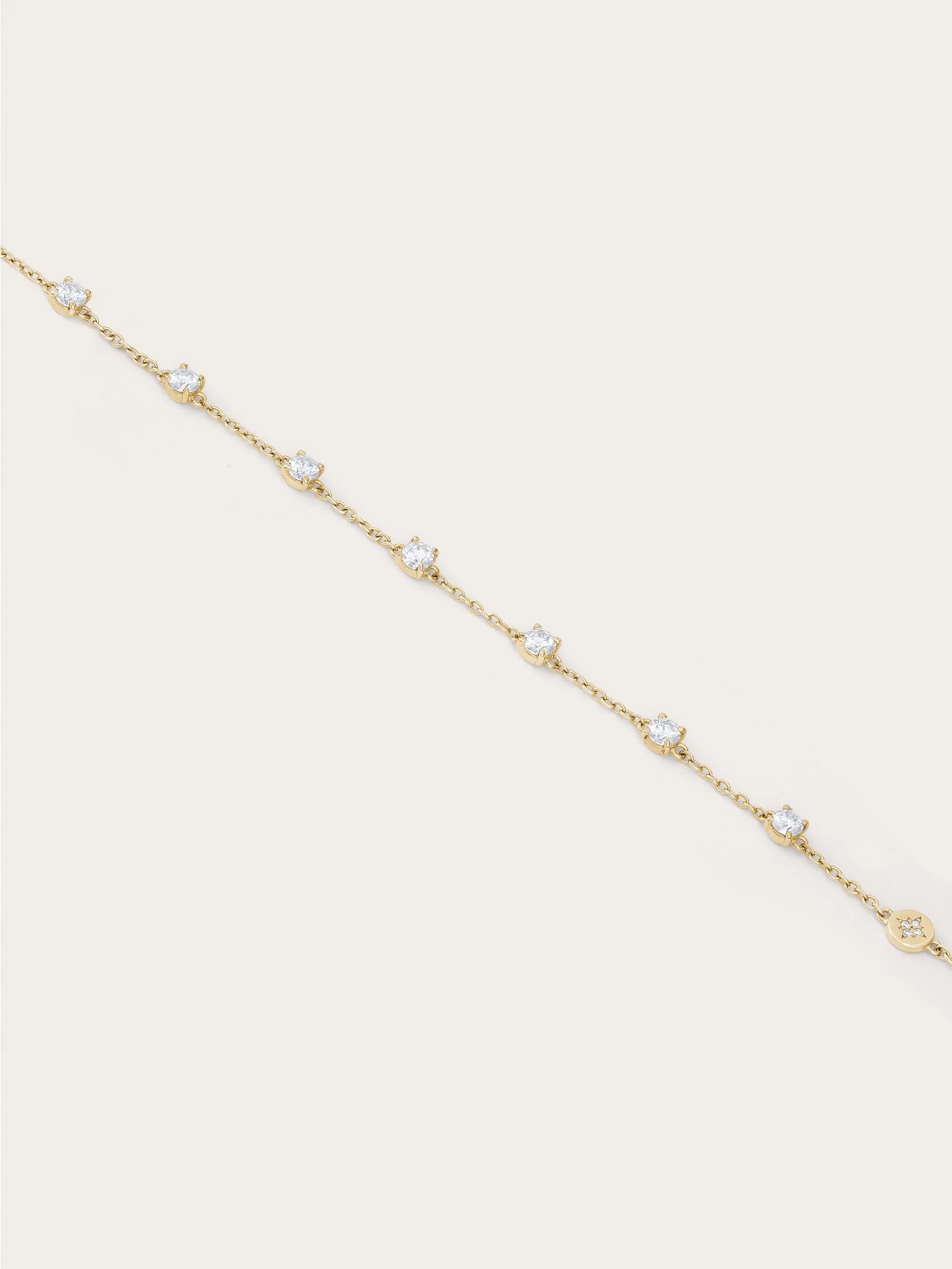 Inspired by the enchanting memory of the first snowfall, this bracelet features 7 dazzling white moissanites that shine like glistening snowflakes under the winter sun. It is hand - crafted using S925 rhodium vermeil.