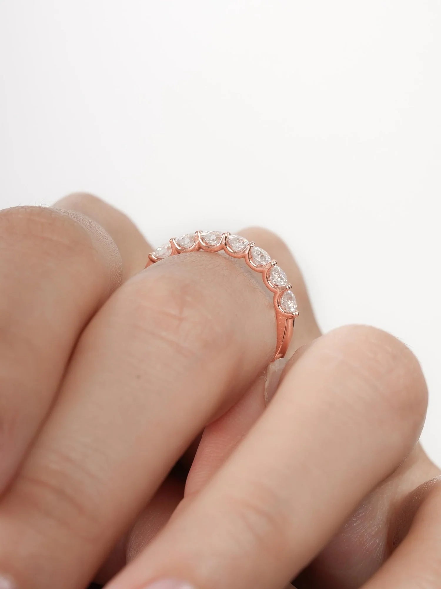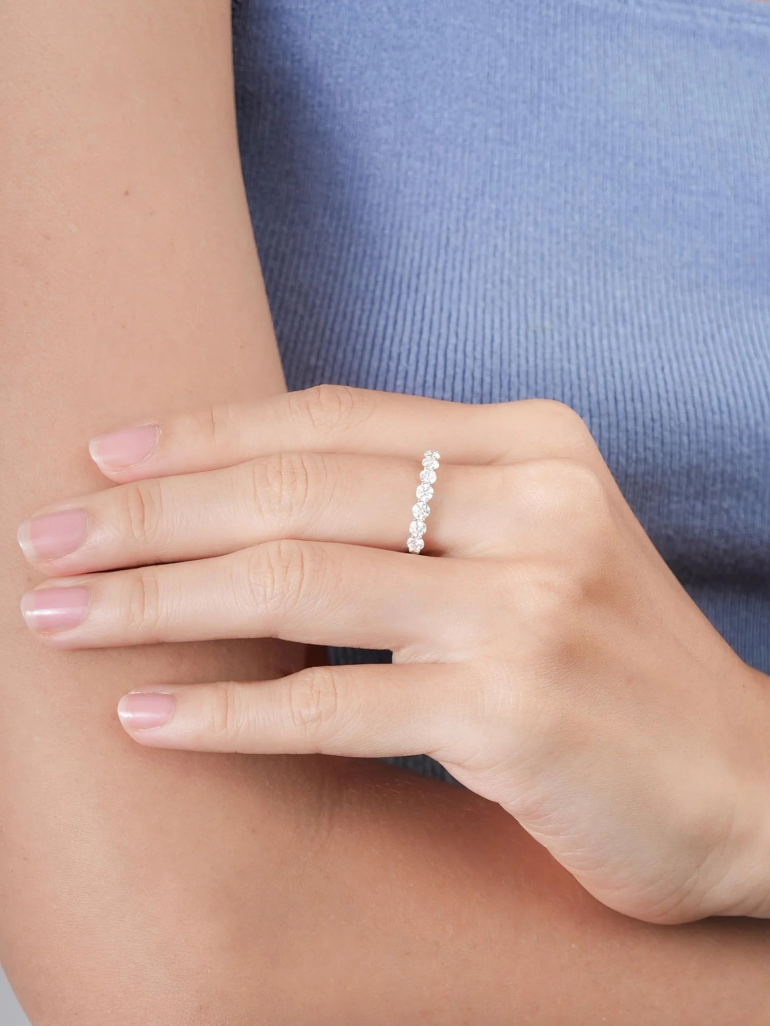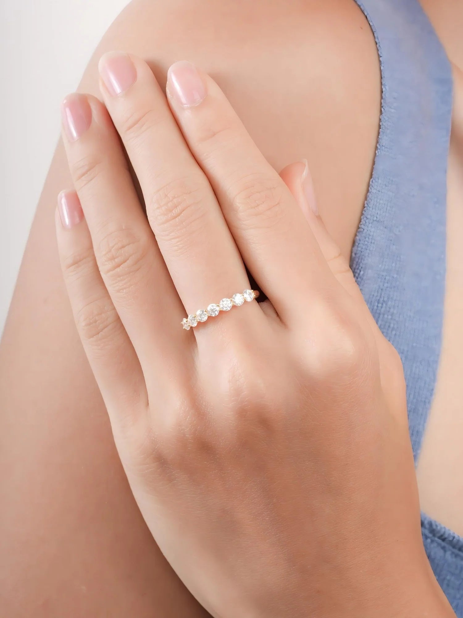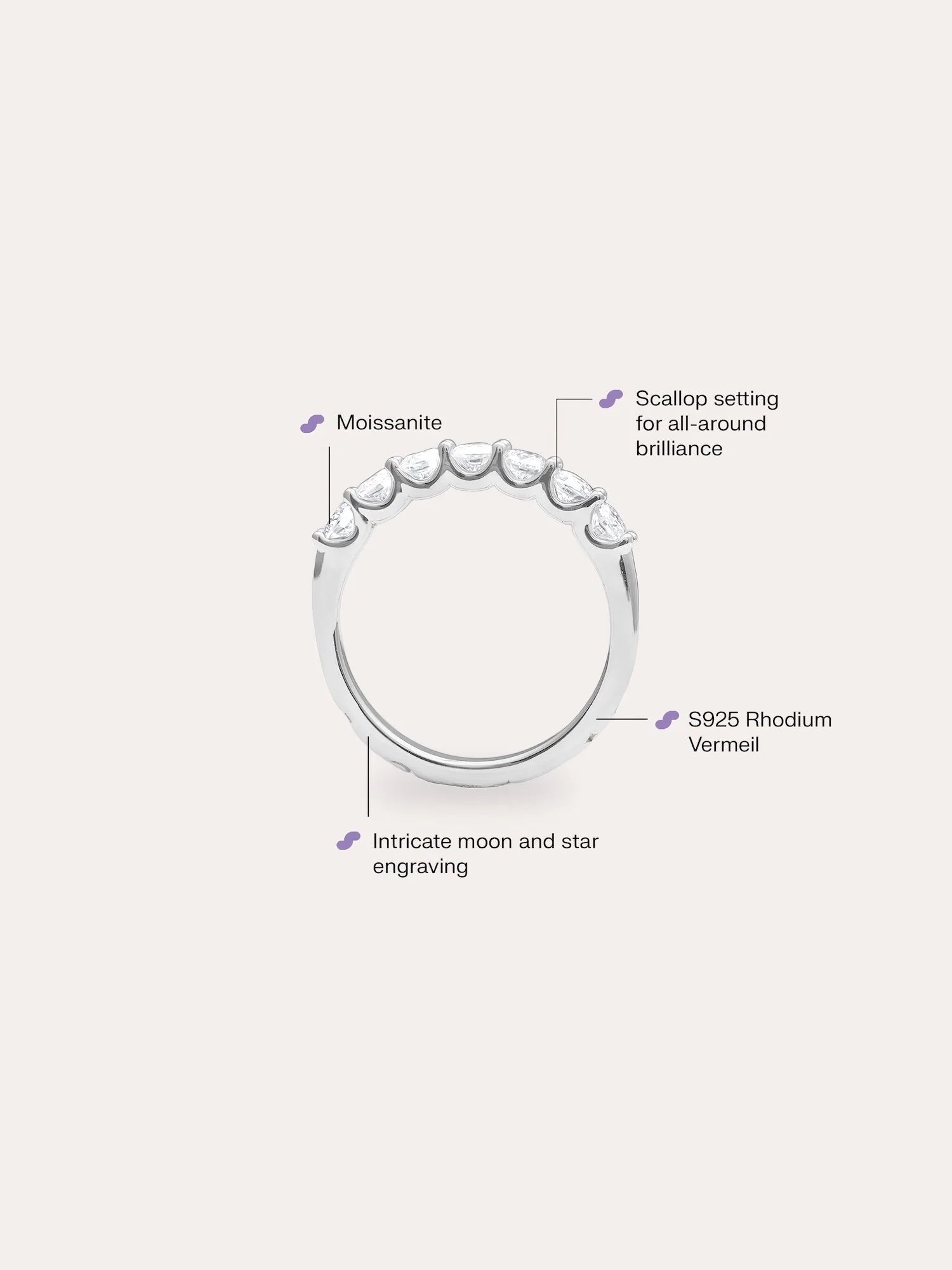 Immerse yourself in the charm of winter with this white moissanite eternity band. Adorned with bright white moissanites, this half - eternity band evokes the enchantment of seeing your first snowfall. It's hand - crafted with 18k gold vermeil.