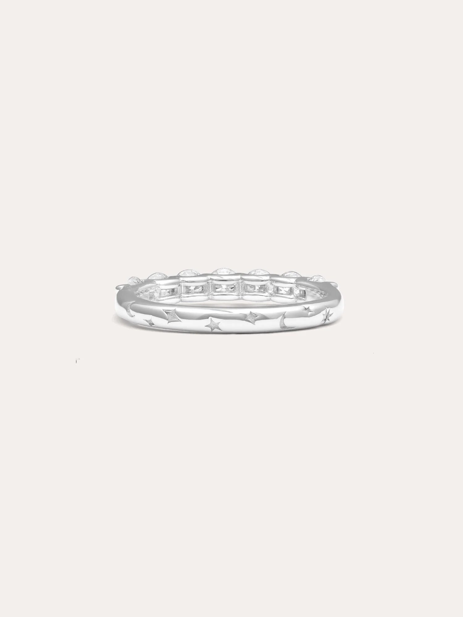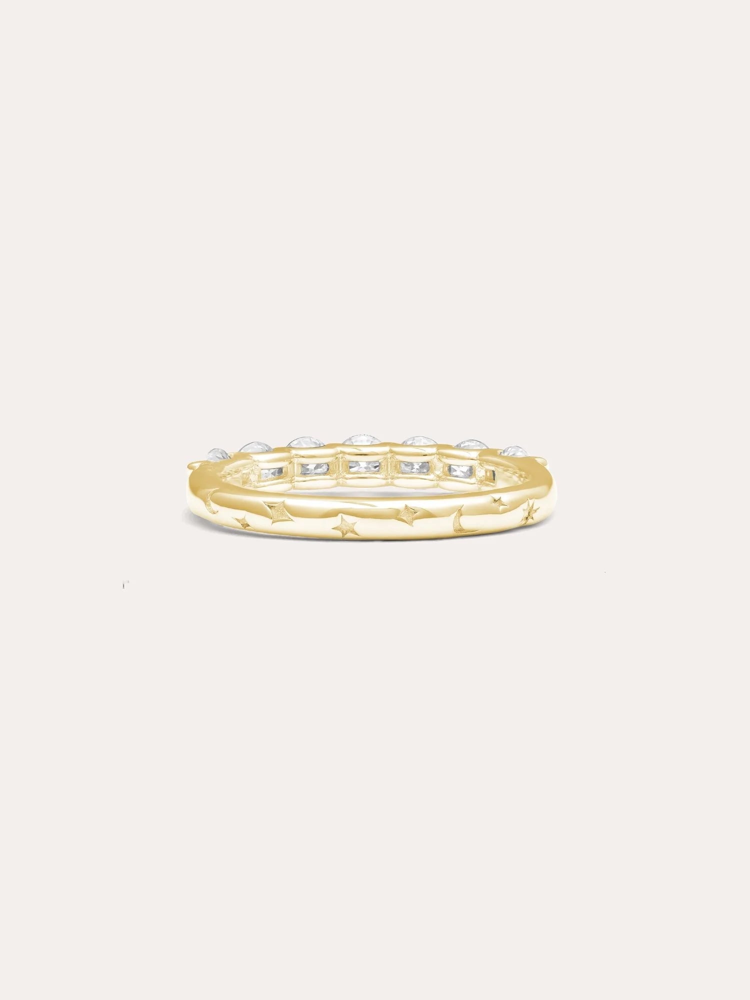 The reversible design gives you two styles in one ring. The other side has a sparkly pattern reminiscent of a night sky with faint star and moon glimmers.