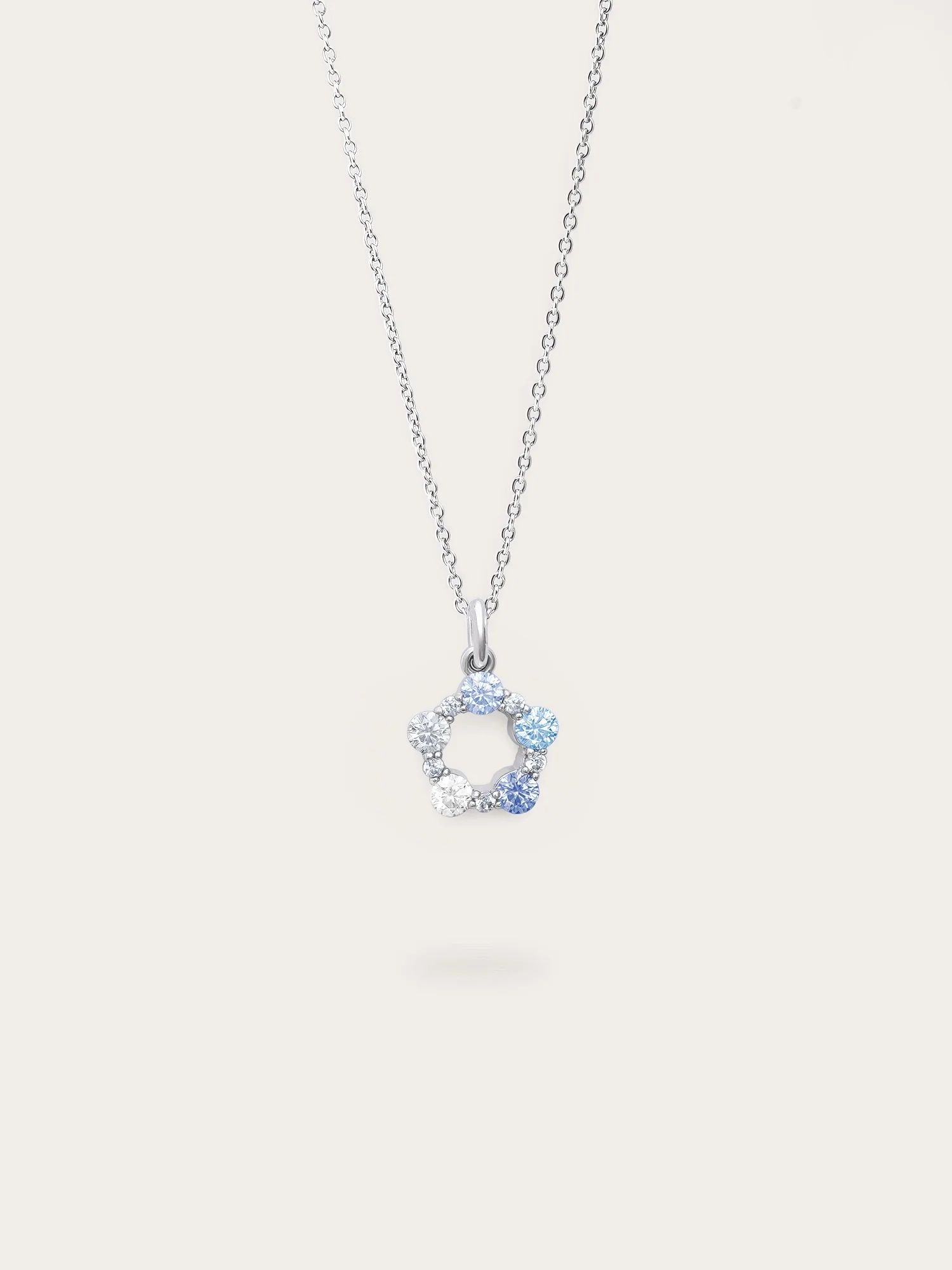 This is a standout item that captures the peaceful charm of winter. It features 5 moissanite stones arranged in a gradient of blue and white shades. Handmade with a certain rhodium - plated material.
