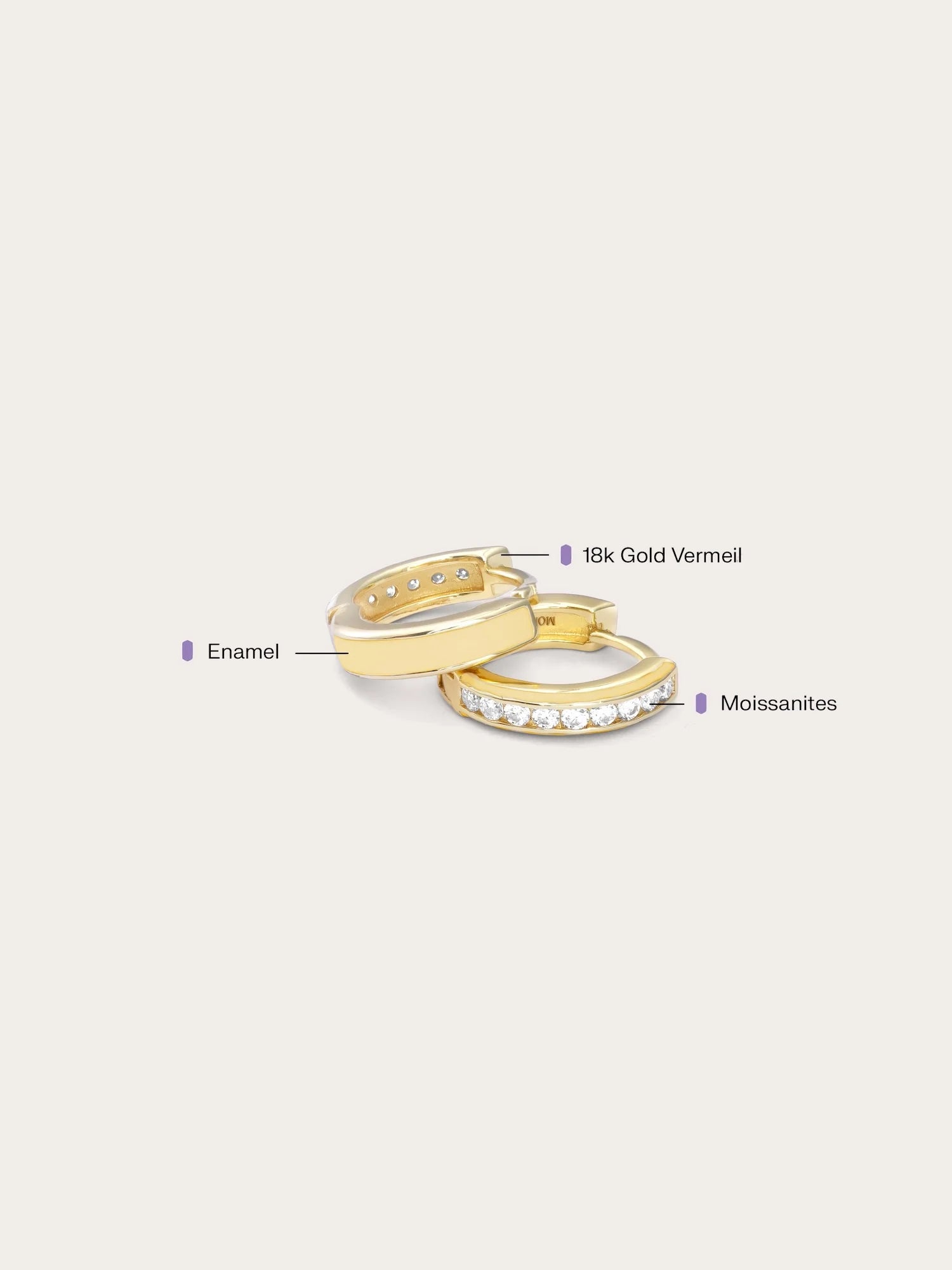 Lightweight and comfortable, these huggie earrings sit close to the ear, making them perfect for everyday wear. The pastel enamel adds a soft splash of color, making them easy to style for any occasion.