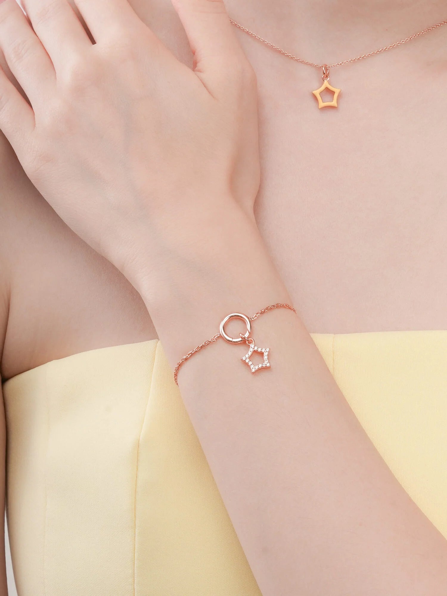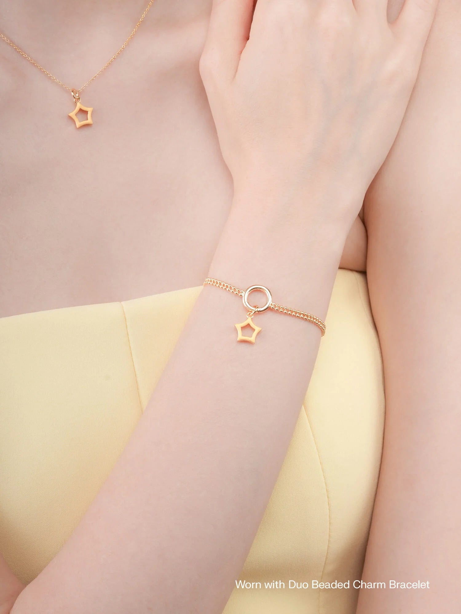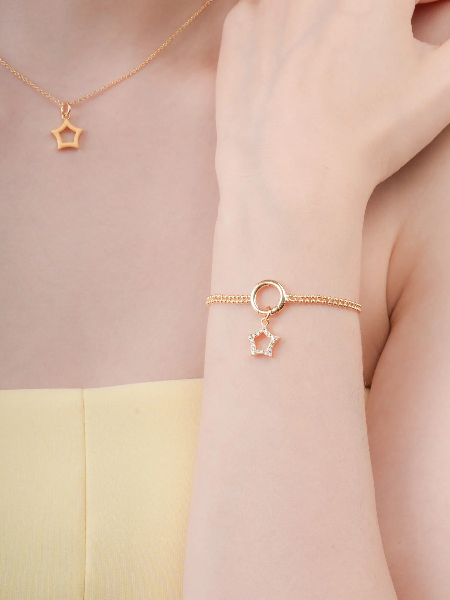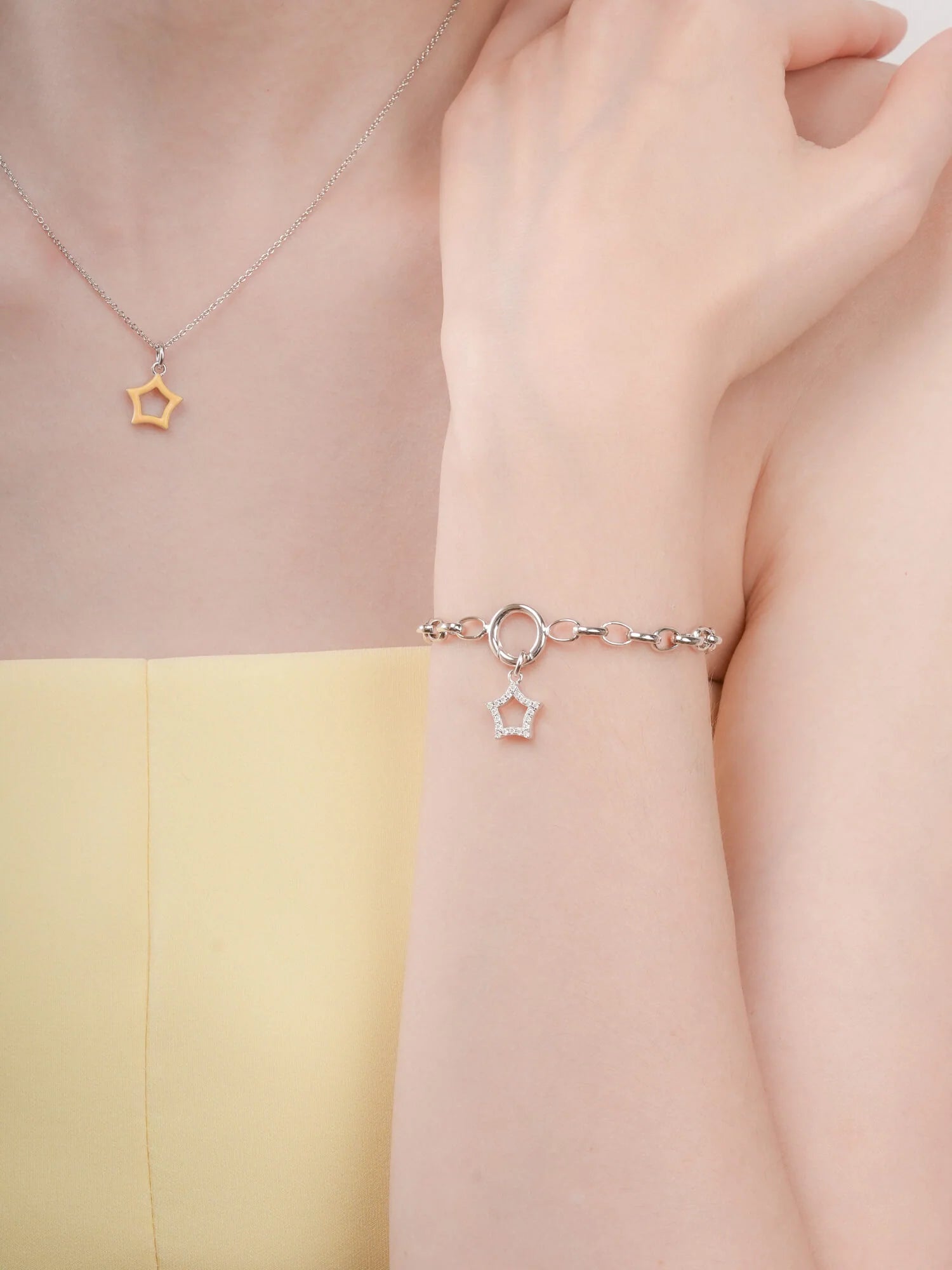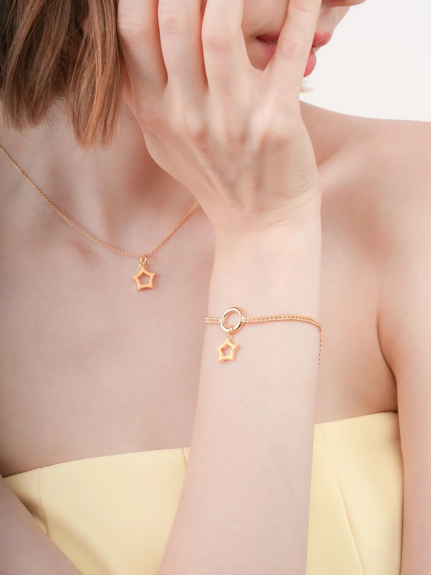Bring a touch of brightness to your daily life with this yellow star pendant. It's versatile and reversible. One side features a hand - painted yellow enamel star, adding a splash of cheerful color, while the other side is adorned with sparkling pavé moissanites for a classic, brilliant look.